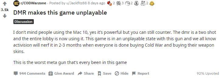 Popular streamers like Turner "Tfue" Tenney and Rhys Price, have also tweeted about this overpowered loadout. In fact, the Dual Wielding Diamatti, Mac-10, and DMR in Call Of Duty Black Ops Cold War are being called the "toxic trio" on social media.