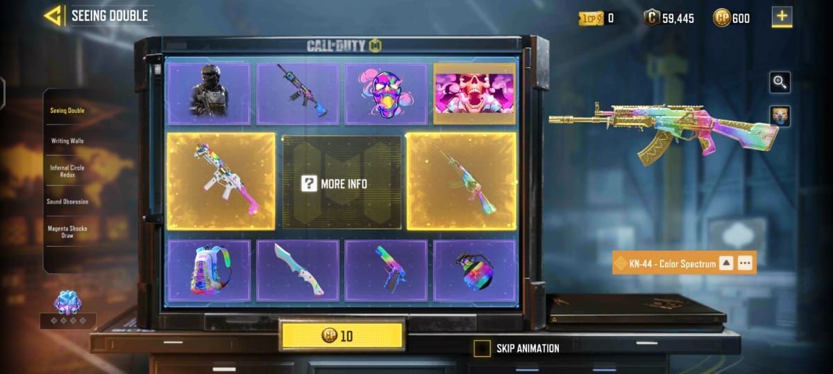 Here are all of the items and their initial probabilities featured in the reward pool Call of Duty Mobile's Seeing Double Draw: