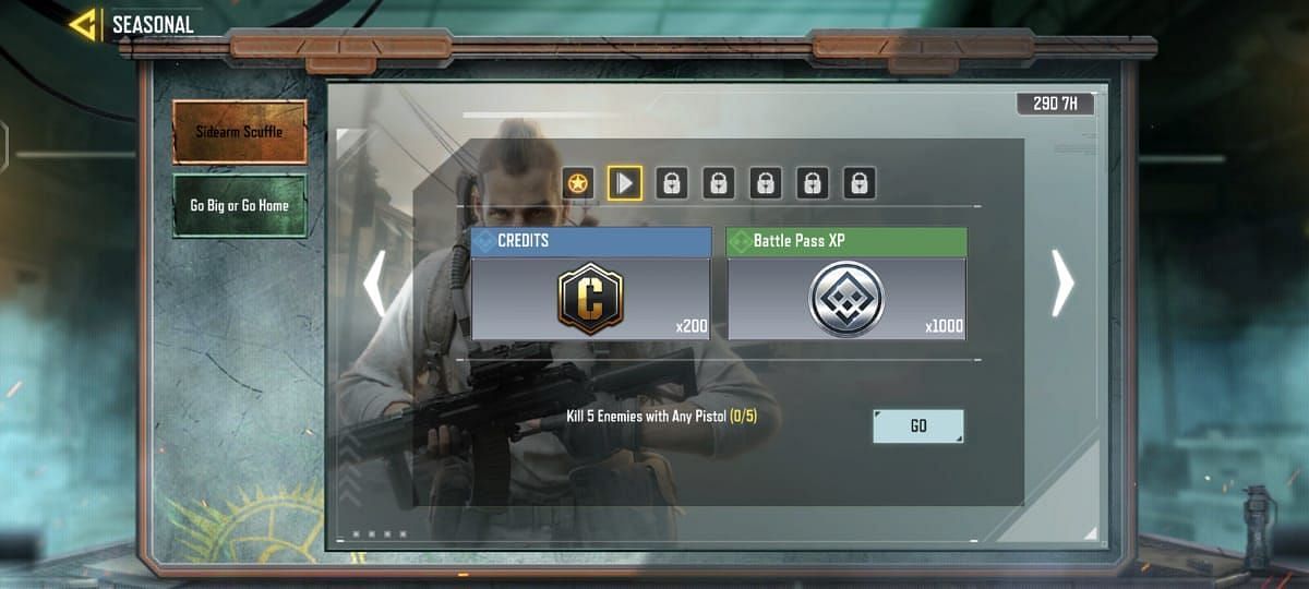 Developers added Sidearm Scuffle earlier today, i.e., on May 2, 2023, in the "Seasonal" tab of COD Mobile's "Events." The latest in-game event has six tasks with multiple rewards that are unlockable chronologically, i.e., players must complete a specific mission at a time to access the next one.