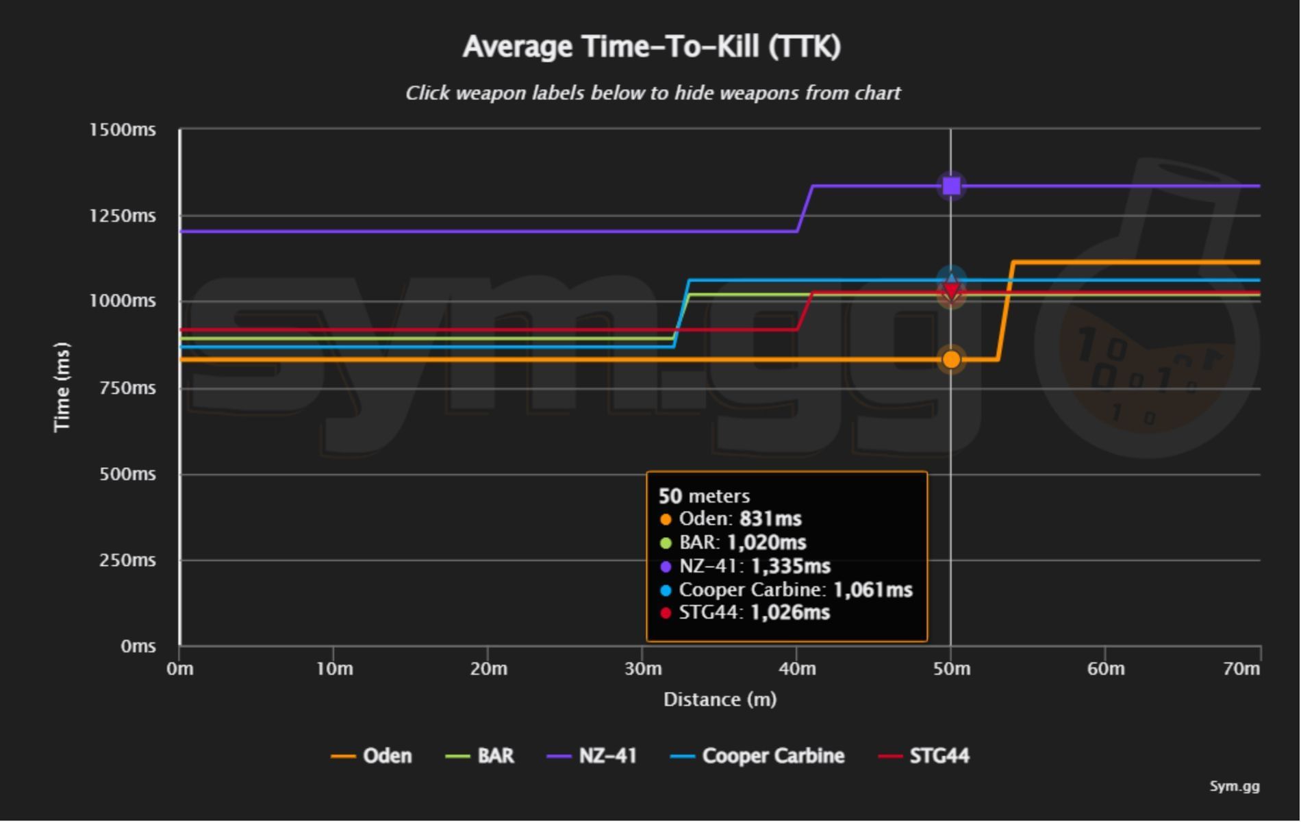 The graph shows that the Oden provides better TTK values than most meta weapons in the current season of Call of Duty Warzone.