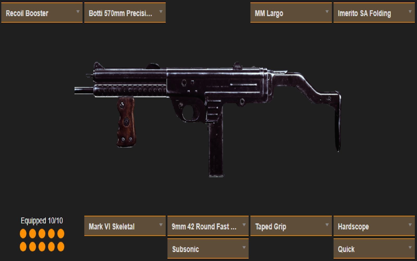 The Armaguerra 43 is one of the fastest firing Sub-Machine Guns without any attachments. It already has a good base damage, and with the correct choice of attachments, this weapon can shred enemies who dare close their distance as it discharges the bullets within the blink of an eye.