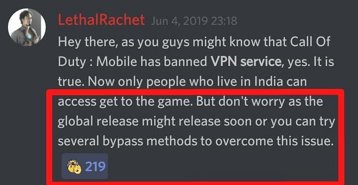 Although, Call of Duty: Mobile devs restricted the use of VPN, they took the official Discord server to convey that one can use several bypass tricks to play the game outside India.