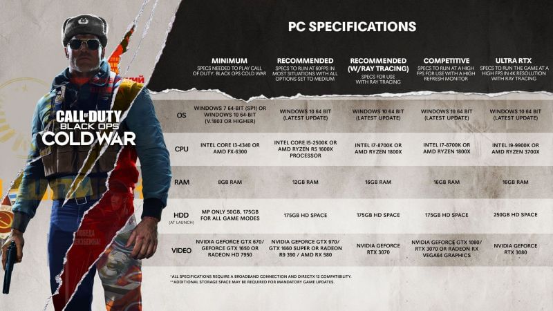Here are the minimum specs needed to play Call of Duty: Black Ops Cold War: