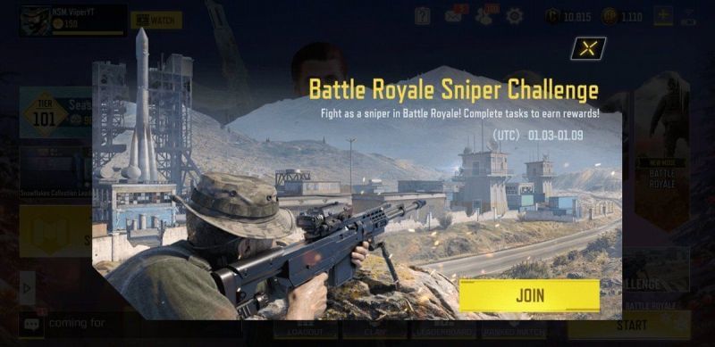 The Sniper Only event is only valid for a week - between January 3 to January 9 - and anyone can participate in it, by choosing the appropriate option. To play this mode, be sure to visit the Battle Royale mode section before selecting the Sniper Challenge from the list.
