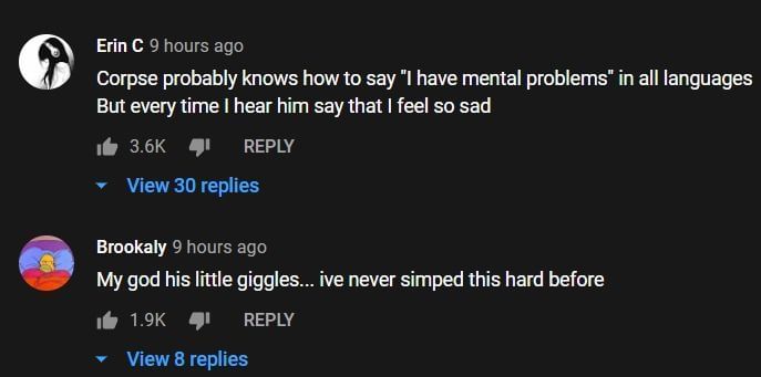 The streamers in question obviously found their conversation hilarious. However, fans thought that the incident was both 'sad and funny,' as Corpse Husband has a history of dealing with various health issues.