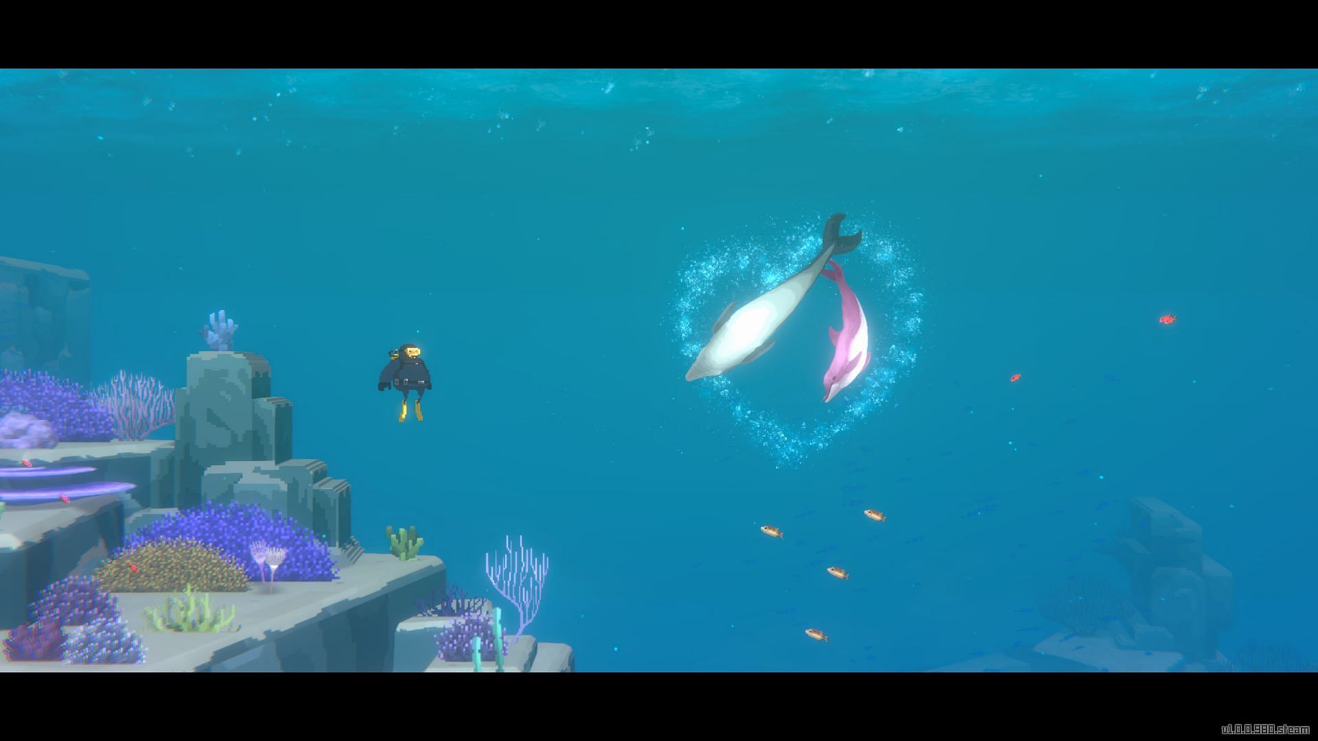 For example, early on during my dives, I came across a pair of dolphins a couple of times. One of them led me to the other, who was either trapped under a net or being captured by miscreants. After saving them a few times, they presented me with a charm that I could use for a boost.