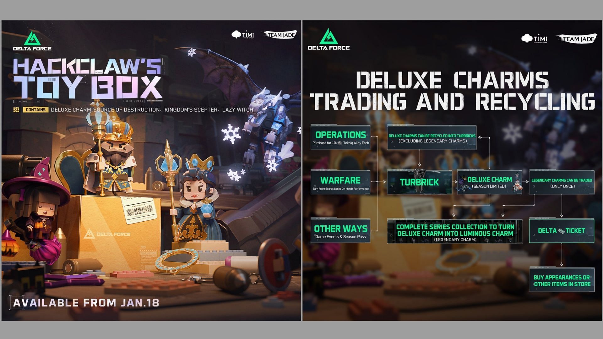 Unlike Mandelbricks, these TurBricks are free to open and require no additional cost. These TurBricks can reward Hackclaw's Toy Box series Deluxe Charms, with a chance to obtain Legendary Deluxe Charms or the ultimate hidden Legendary Charm, Source of Destruction.