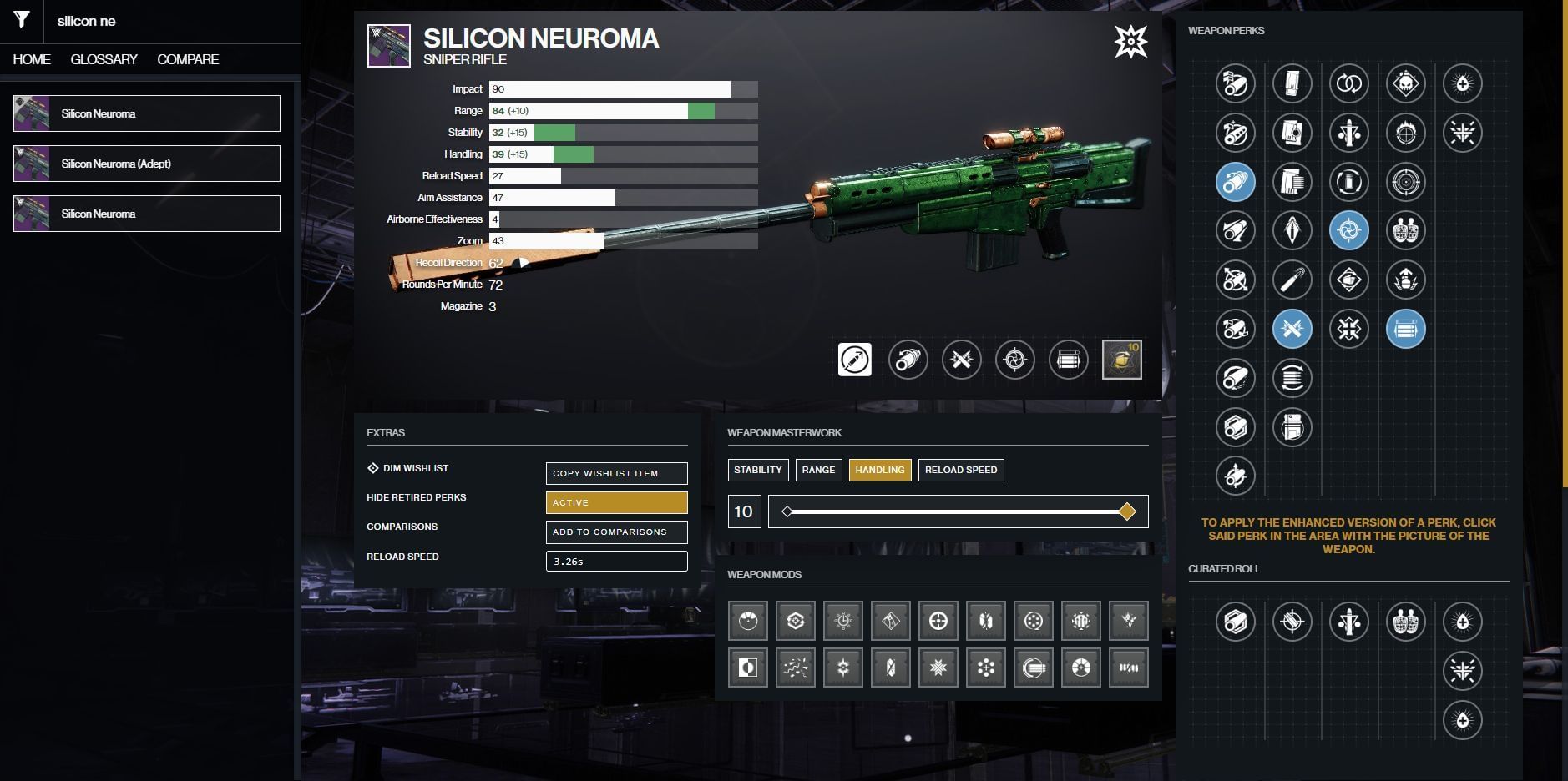 Silicon Neuroma has been deemed a decent DPS option for elite enemies and endgame bosses due to the perks it can roll with. Being a Kinetic weapon, it can also pave the way for strong Energy Exotics and add (additional enemies) clearing primaries.