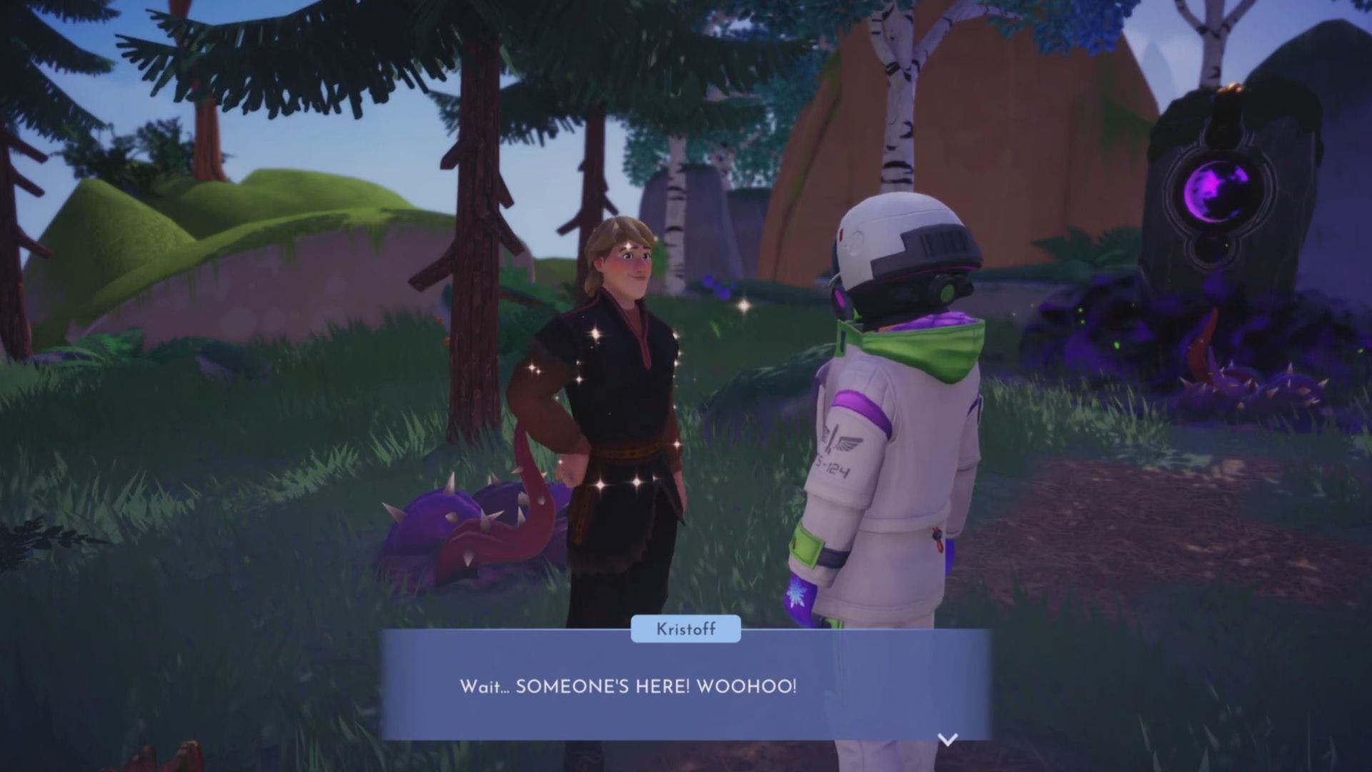 Once unlocked, head over to the Forest of Valor to locate Kristoff inside. He will be standing near the center of the forest, near a stream, and next to the corrupted Pillar. A mysterious dark portal will also be beside him. If you can’t find him, open up the map and it will show you his location once you have unlocked the forest biome.