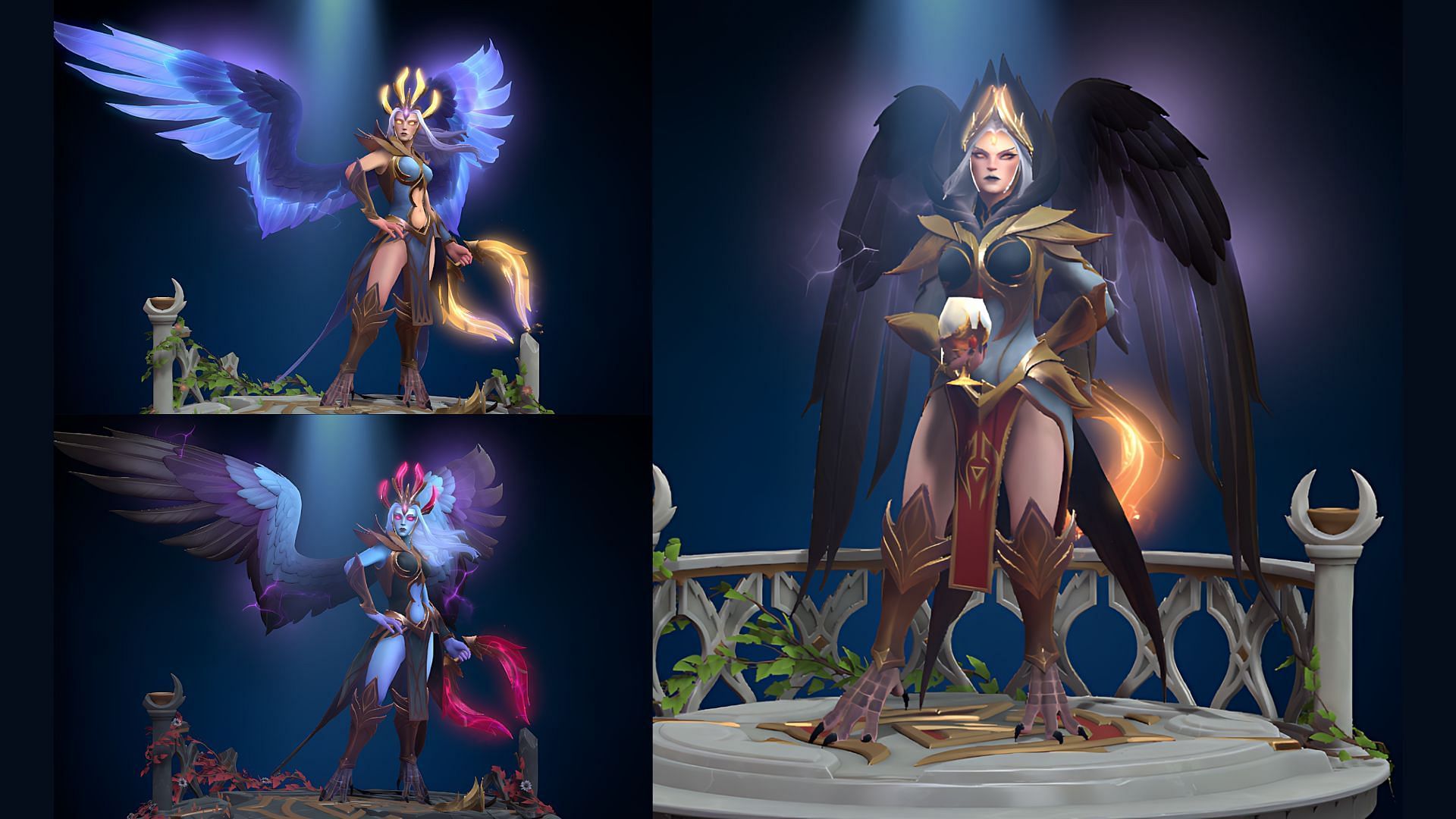 - Sovereigns of Skywrath: Releases a golden-yellow magical bird, leaving a trail of black colored with golden glitter and blue line highlights, representing her majestic and terrifying command.