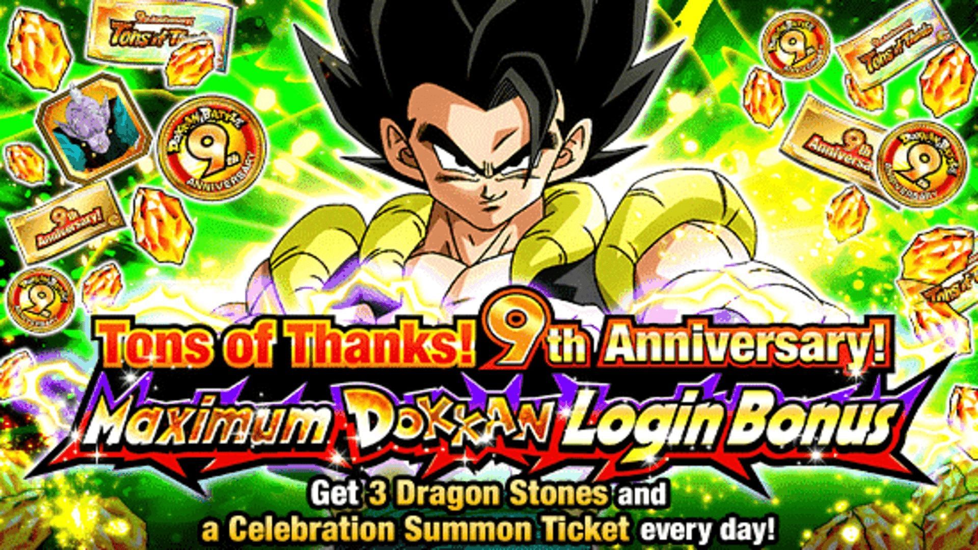 Tons of Thanks 9th Anniversary Maximum Dokkan login bonus