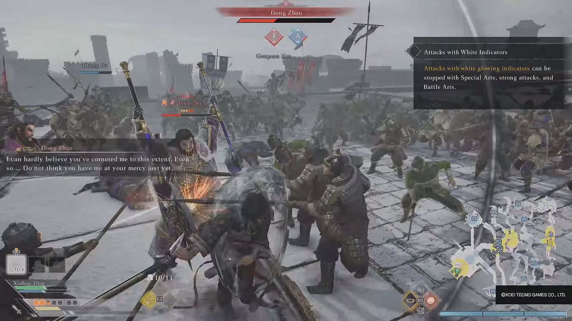 - Time your combos: Combine battle arts and musou attacks for the maximum effect against Dong Zhuo and his officers.
