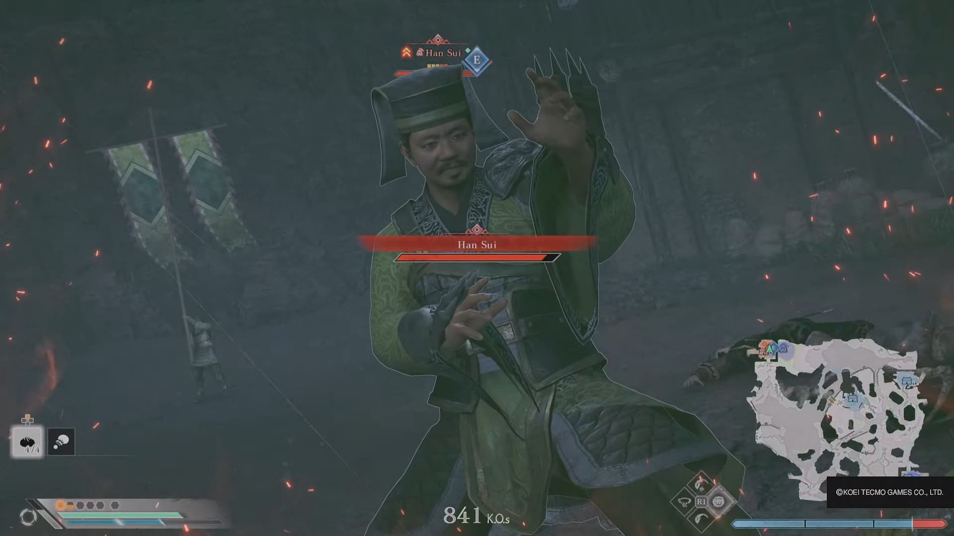 - Engage Han Sui: Unleash your entire arsenal of battle arts and musou attacks to defeat him.