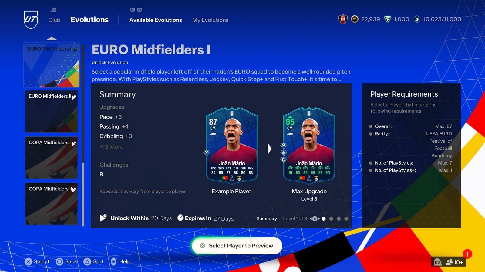 All upgrades and requirements of the EA FC 24 EURO/COPA Midfielders Evolutions