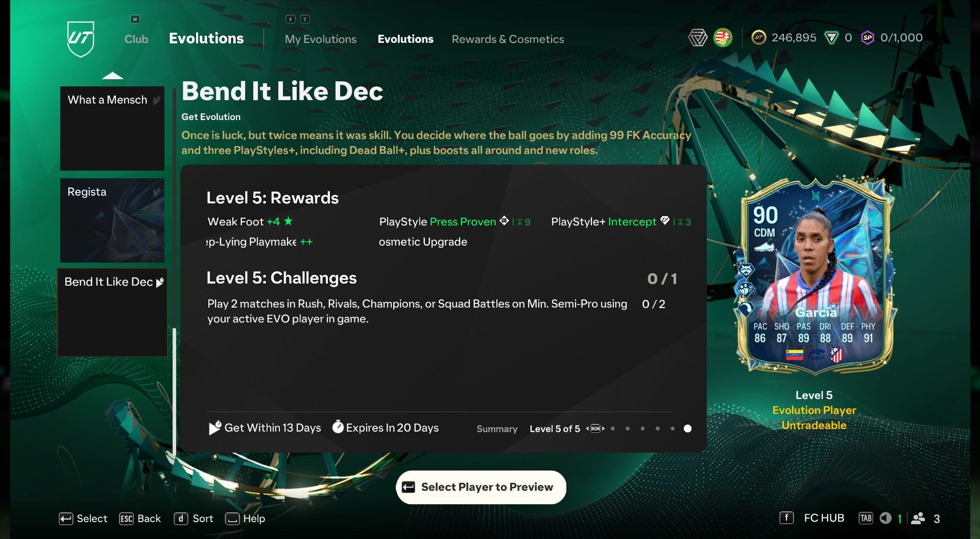 All upgrades and challenges of the EA FC 25 Bend It Like Dec Evolution