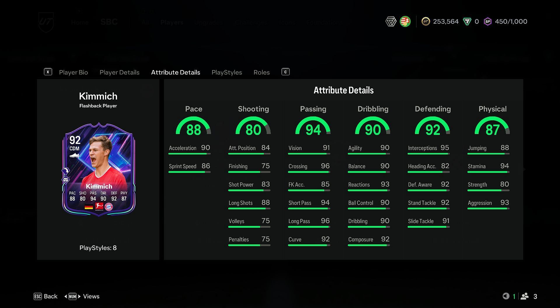 In addition, the Kimmich Flashback card’s 92 Defending and 87 Physicality attributes are quite effective against top-notch forwards on the virtual pitch. Its German and Bundesliga links might make it easier for anyone to fit into their Ultimate Team squad.