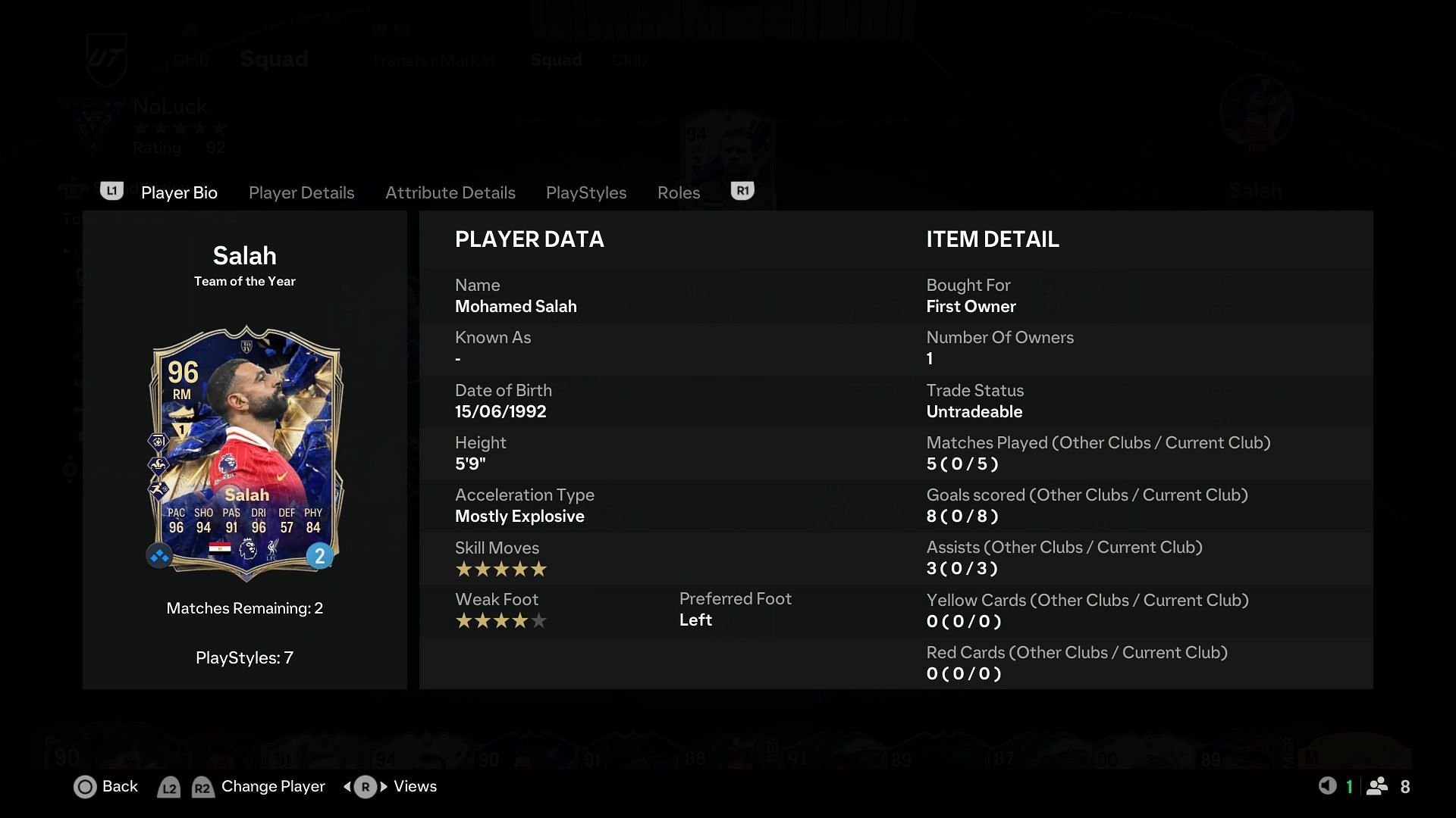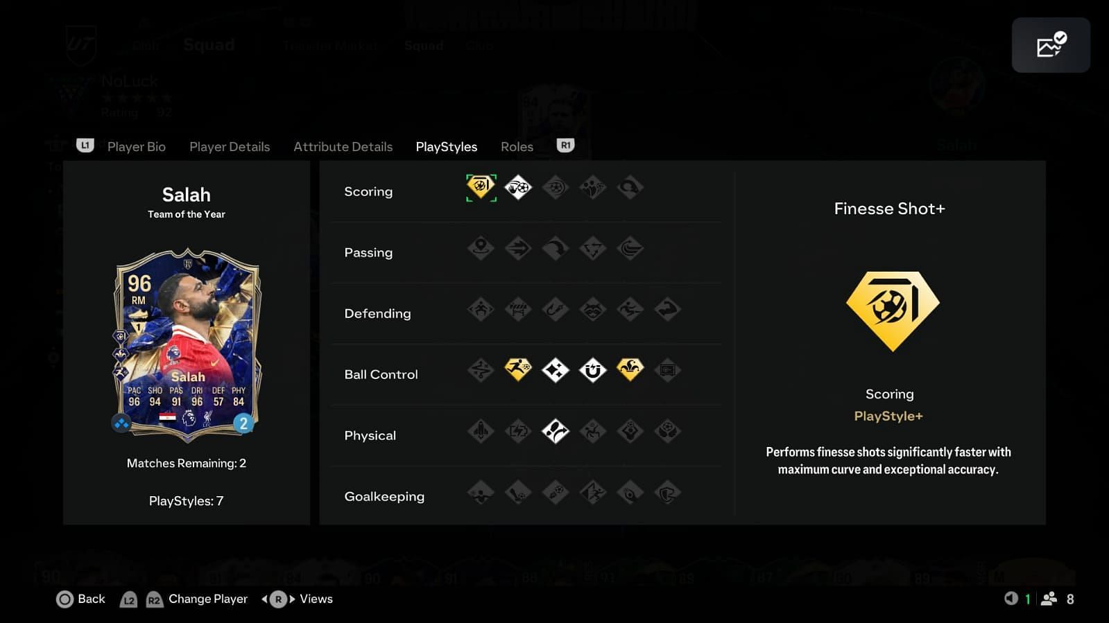 While Salah's passing stats and abilities are still top-tier, this item lacks passing PlayStyles. The Incisive Pass, Pinged Pass, and Tiki Taka PlayStyles are really useful for attackers in the current meta, and their absence hinders his playmaking abilities. The lack of the Technical and Quickstep PlayStyles is also disappointing, as his pace and dribbling stats would be perfect for such traits.