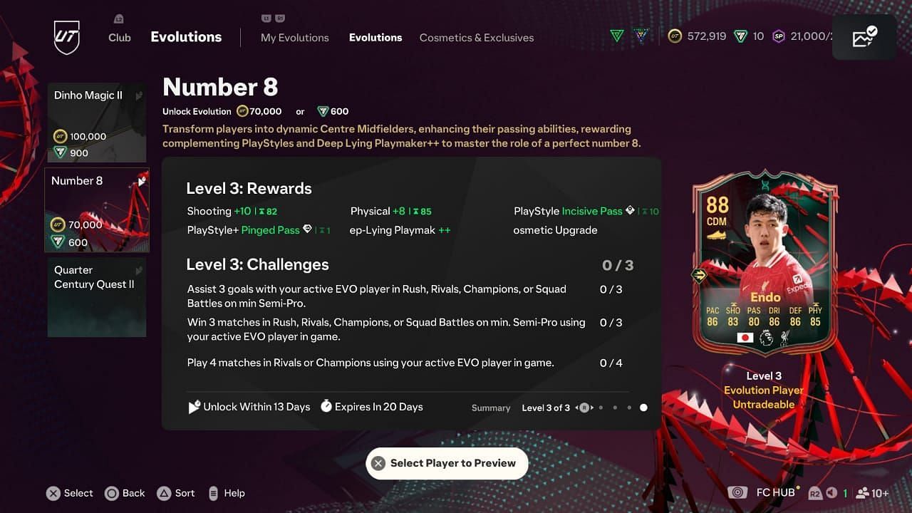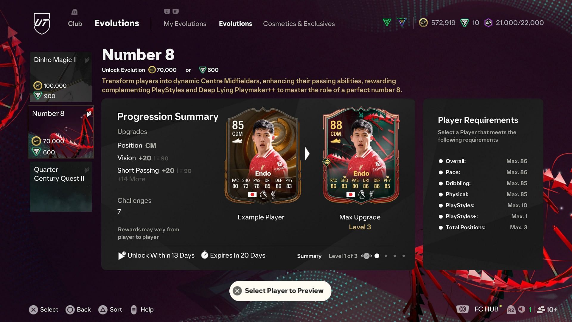 A player must meet the following requirements to be eligible for the EA FC 25 Number 8 Evolution: