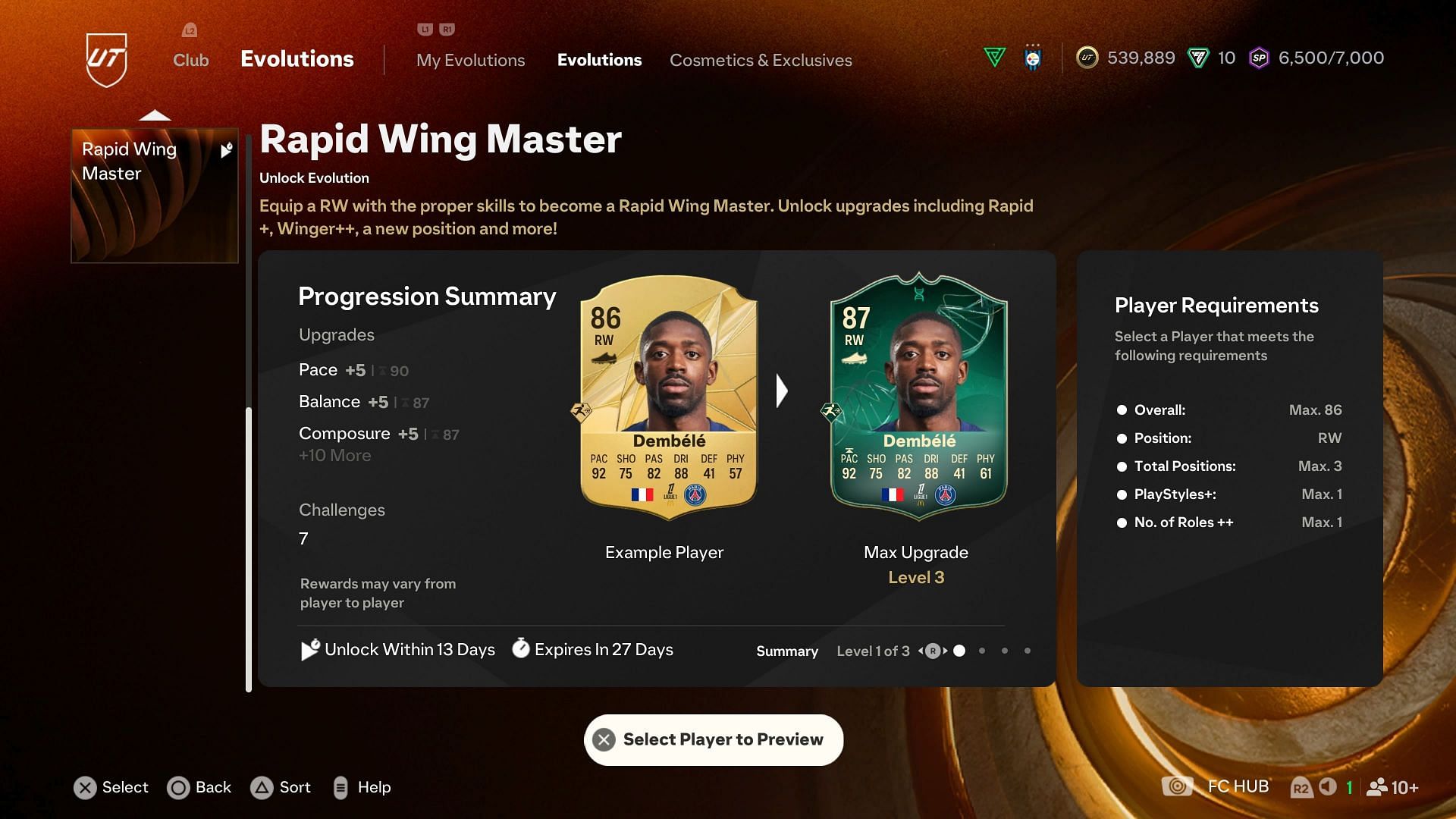 A player must meet the following requirements to be eligible for the EA FC 25 Rapid Wing Master Evolution:
