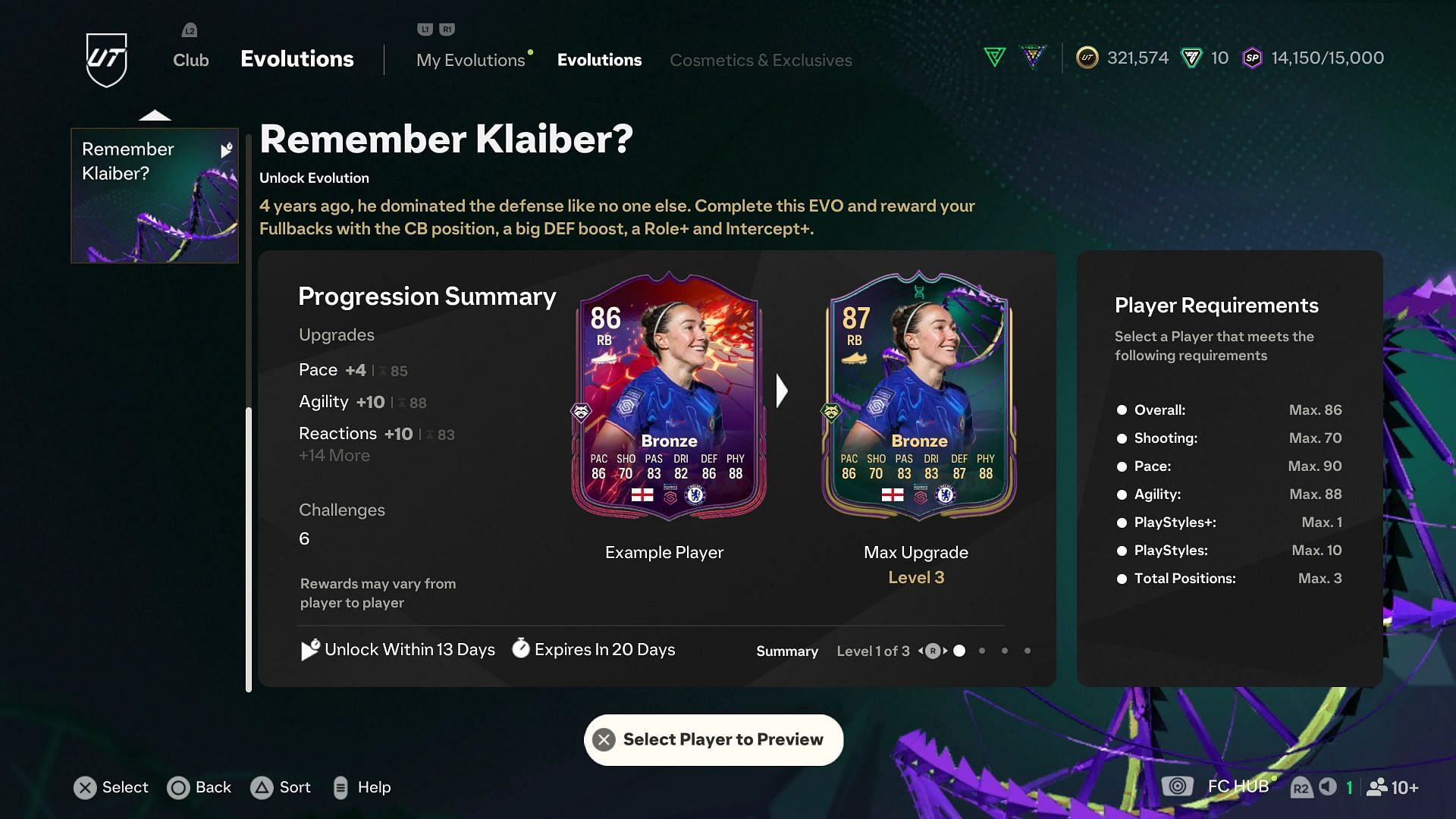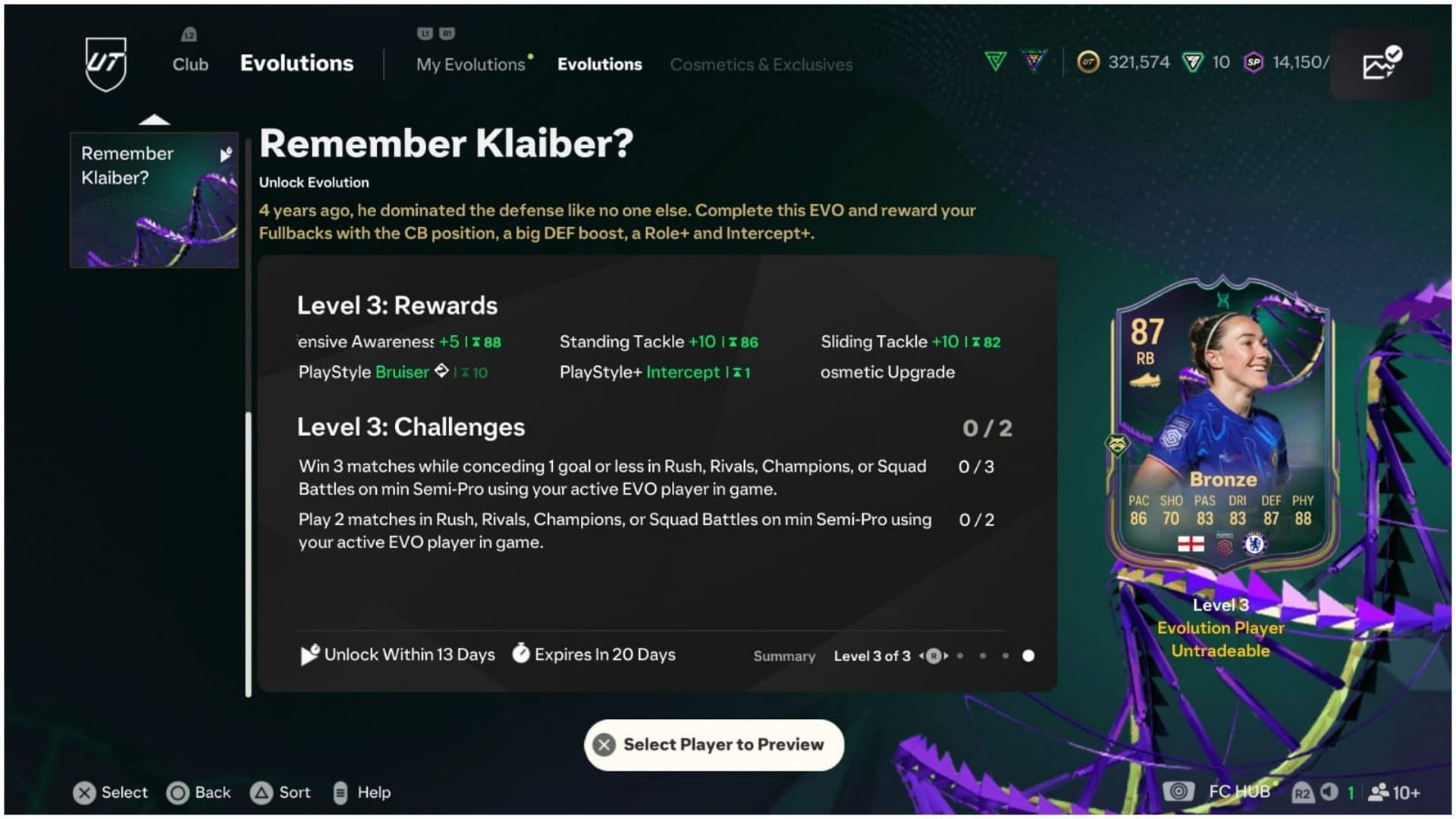 Unlike many recent Evolutions like Artist, Sentinel, and Hunter, the EA FC 25 Remember Klaiber Evolution has three levels to complete instead of two. These are the upgrades offered by each level of the EVO: