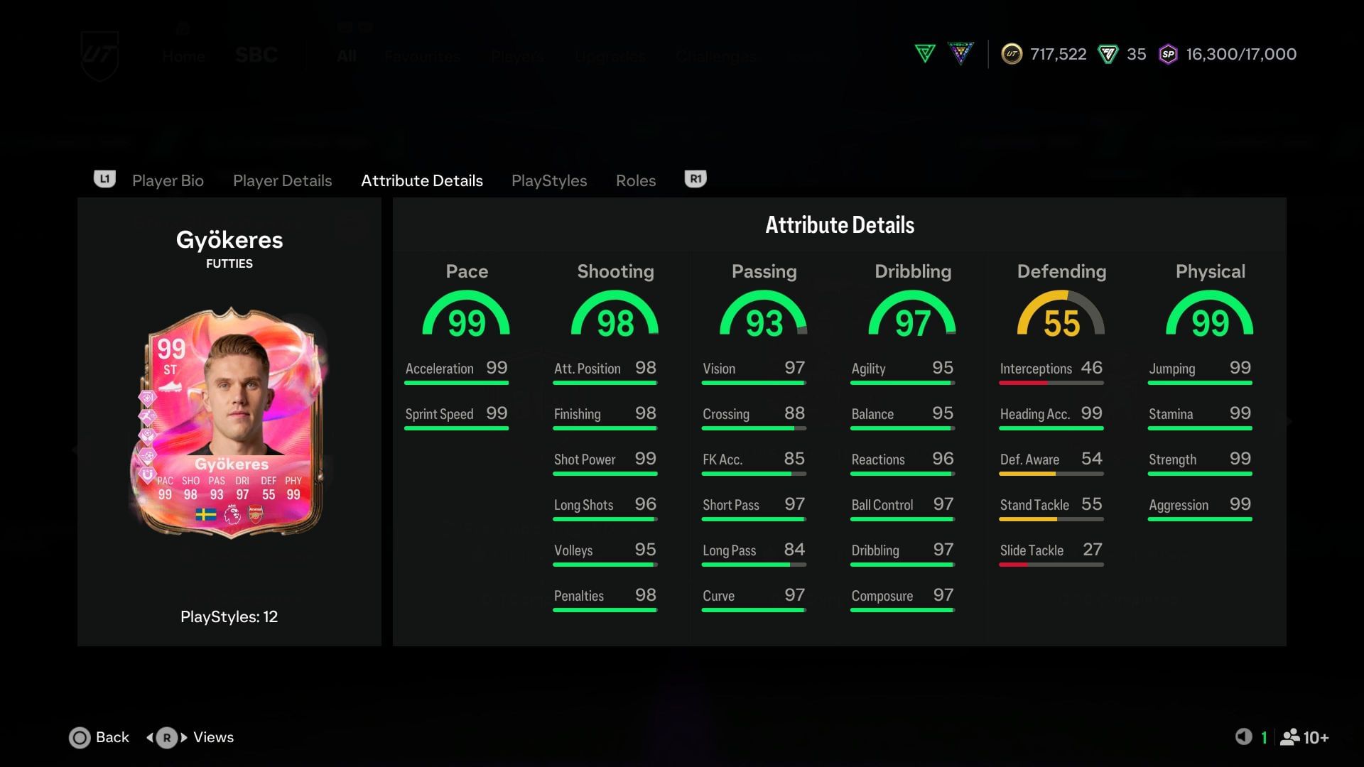 The talismanic striker has been one of the most prolific goal-scorers in European football over the past couple of years, and his consistency has earned him a high-profile move to the Premier League. He already had a Thunderstruck item and a 96-rated Team of the Season version this year, but the EA FC 25 Viktor Gyokeres FUTTIES SBC item is by far his best variant.