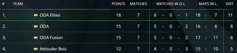 The Top 4 teams that have qualified for the LAN Finale of the Winter Season are :-