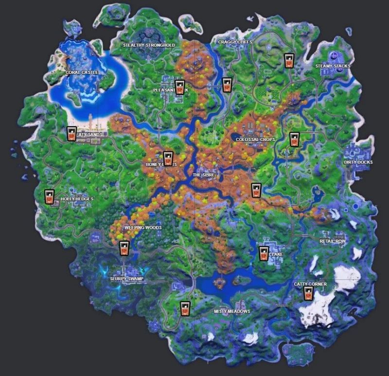 Along with the tires, garages have appeared all over the island, and players can find the Chonker tires here. These garages have appeared next to every gas station on the island, as seen on the map.