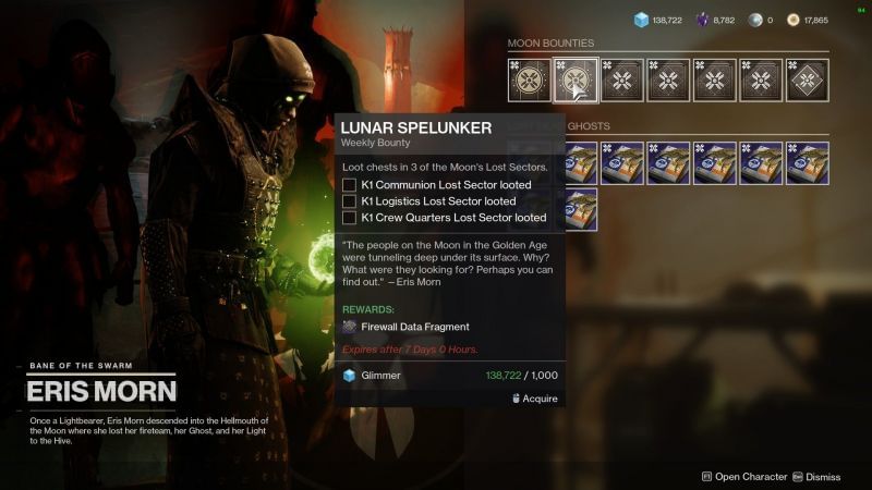 Planetary vendors that still provide weekly bounties are Eris Morn on the Moon, Shaw Han on the Cosmodrome, Variks on Europa, and Suraya Hawthorne on the Tower.