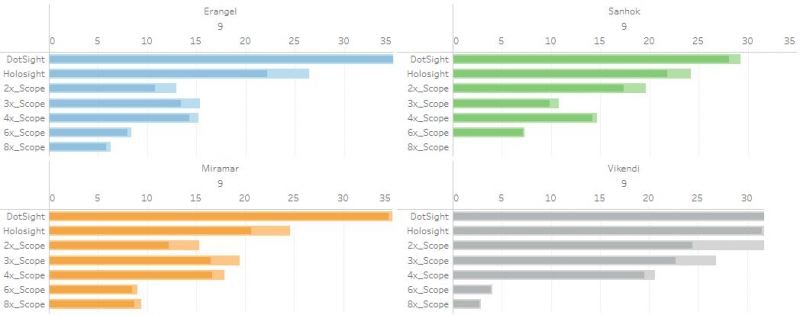 Though the developers didn't increase the drop rate for scopes like 8x and 6x. They increased the drop rate for 4x scopes in PlayerUnknown's Battleground snow map vikendi. This was done to support the midrange battles.