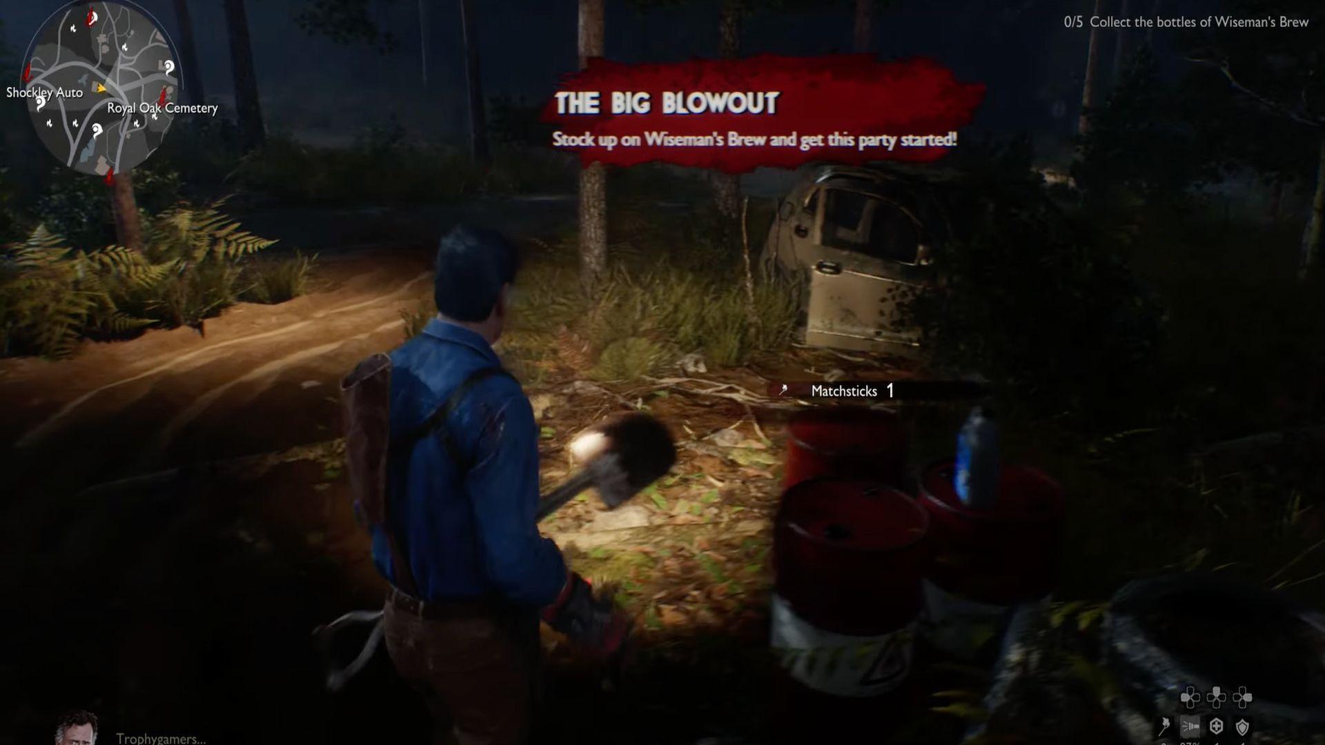 Next, players should head west to the Shockley Auto area. Here, they will encounter some Deadites and a Deadite Elite, a much stronger variant. It is recommended to take the Deadite out with a melee weapon and use the revolver to remove the Deadite Elite, as its health will go down much faster with minimal risk. Once defeated, grab the Wiseman’s Brew.
