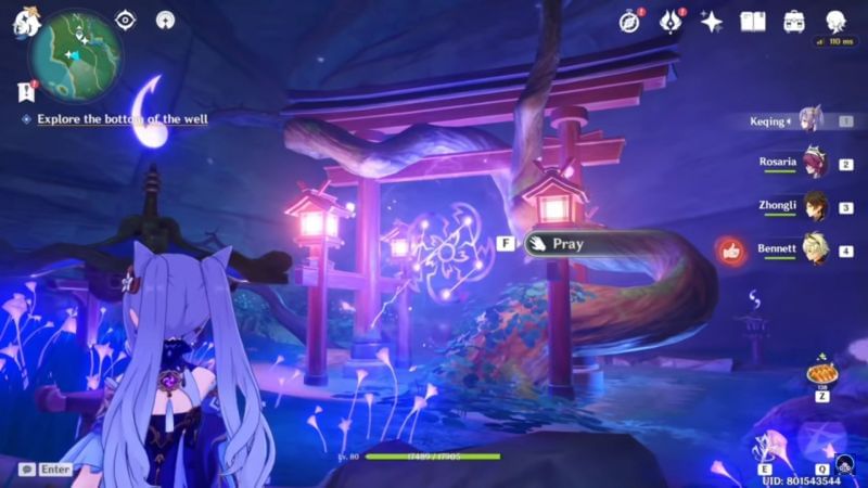 At the bottom of the well, Paimon will find a notch that must be purified with the Traveler’s Ward. After purifying it, a diagram will appear, showing a line zig-zagging between five points. These points represent the five notches in the room, which can be adjusted for the puzzle.