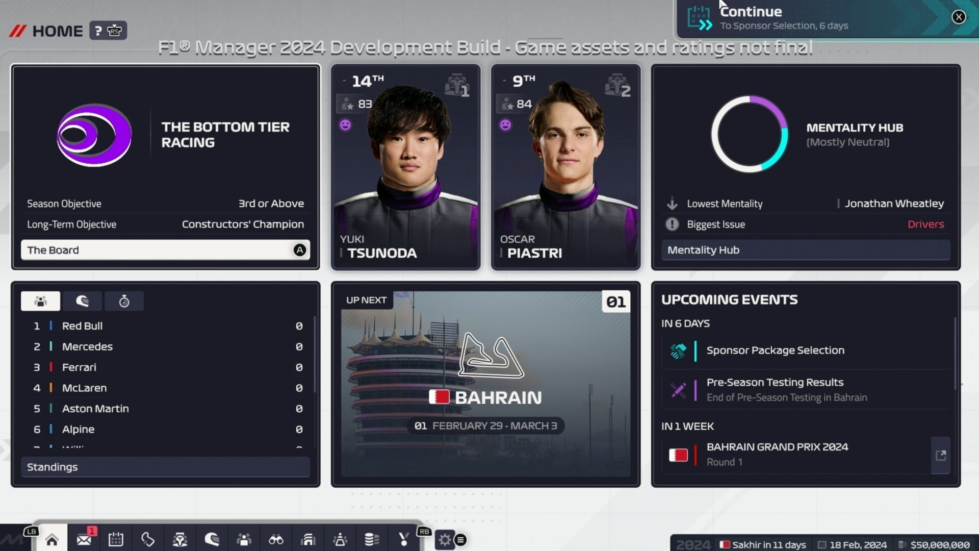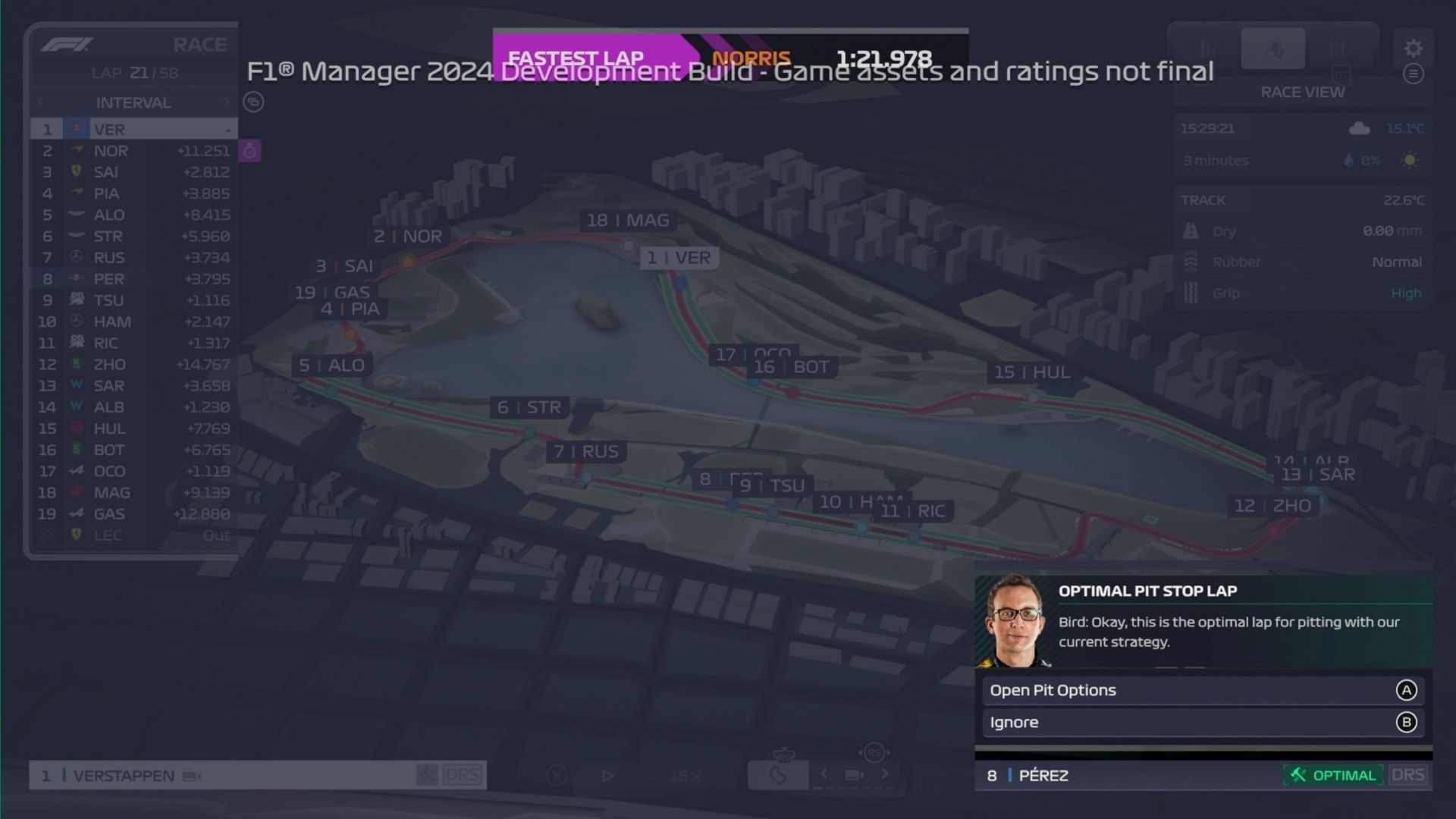 This was a test to see how we, as players, could respond and react in real-time to these issues coming up in F1 Manager 2024. As someone who was very new, I was grateful to have some devs around to give me advice and show me through the various menus and systems.
