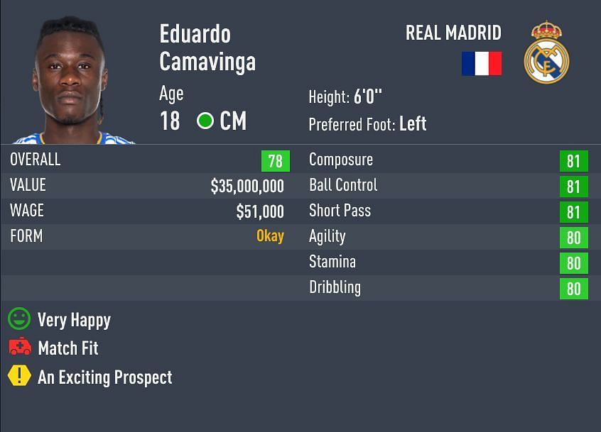 Camavinga is one of Real Madrid's most recent acquisitions, due to which players will have to wait until winter to sign him. The youngster will be the best CDM in FIFA 22 once he reaches his maximum potential in Career Mode. Being a quick dribbler with excellent passing and defending, he can play in almost every position.