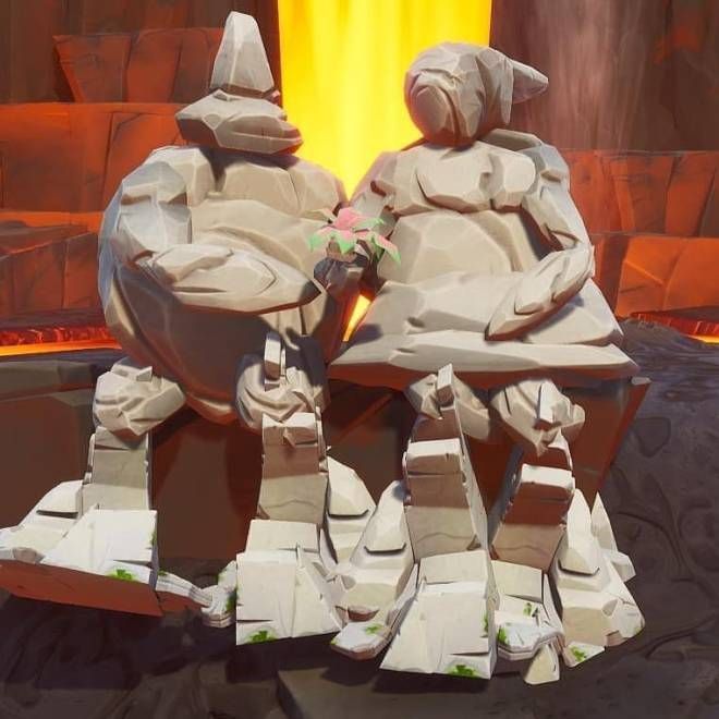 This is a mystery that might never be solved! Back in Chapter 1 Season 8, we saw a giant rock man come to life, after which a rock woman materialized nearby. After the eruption of the volcano, the couple got together over weeks of updates.