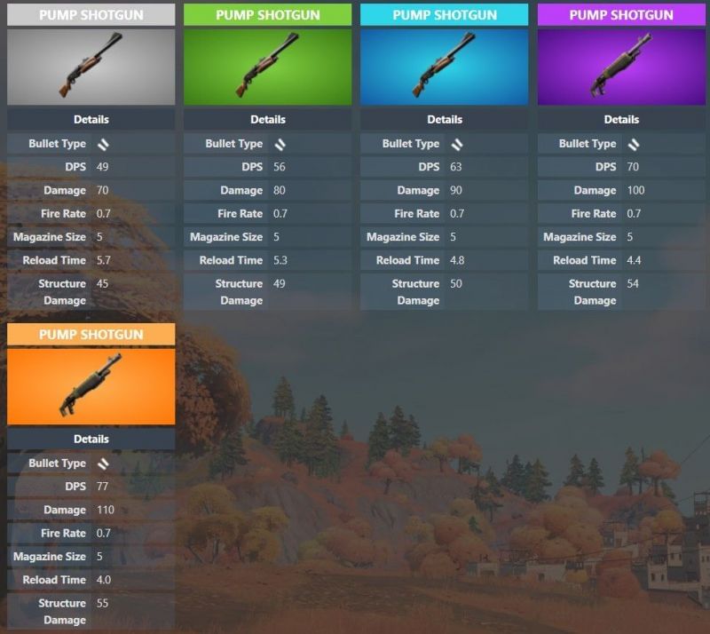 At its highest levels, the Pump Shotgun deals a maximum damage of 110 and takes around 4 seconds to reload. It's got a magazine size of 5 and uses shotgun shells as ammo.
