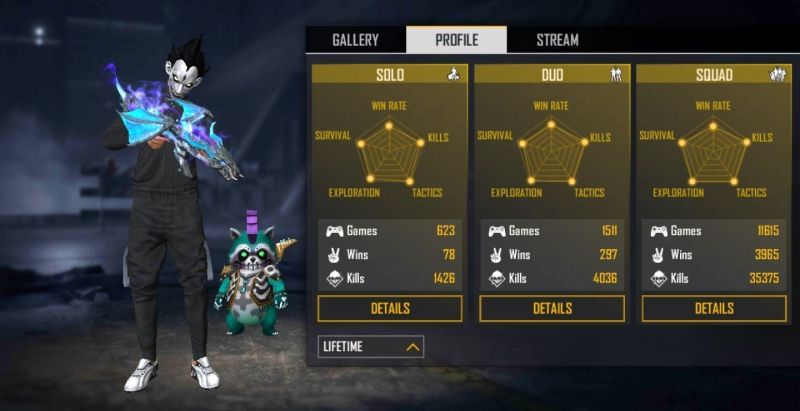 Lastly, the player has appeared in 623 solo matches and has triumphed in 78 of them, having a win percentage of 12.52%. In the process, he has amassed 1426 kills.