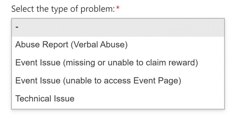 Step 4: Next, players must choose the type of problem and fill in all the details, including the email address and etc.
