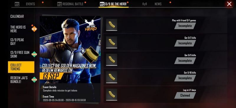 As a part of the 'Be the Hero' event, the players will also have a chance to get the Jai character for free. They will have to collect jigsaw pieces to claim the same free of cost. These pieces will be available between the 10th and 13th September, and users will be able to redeem the same for characters from 13th till the end of the event.