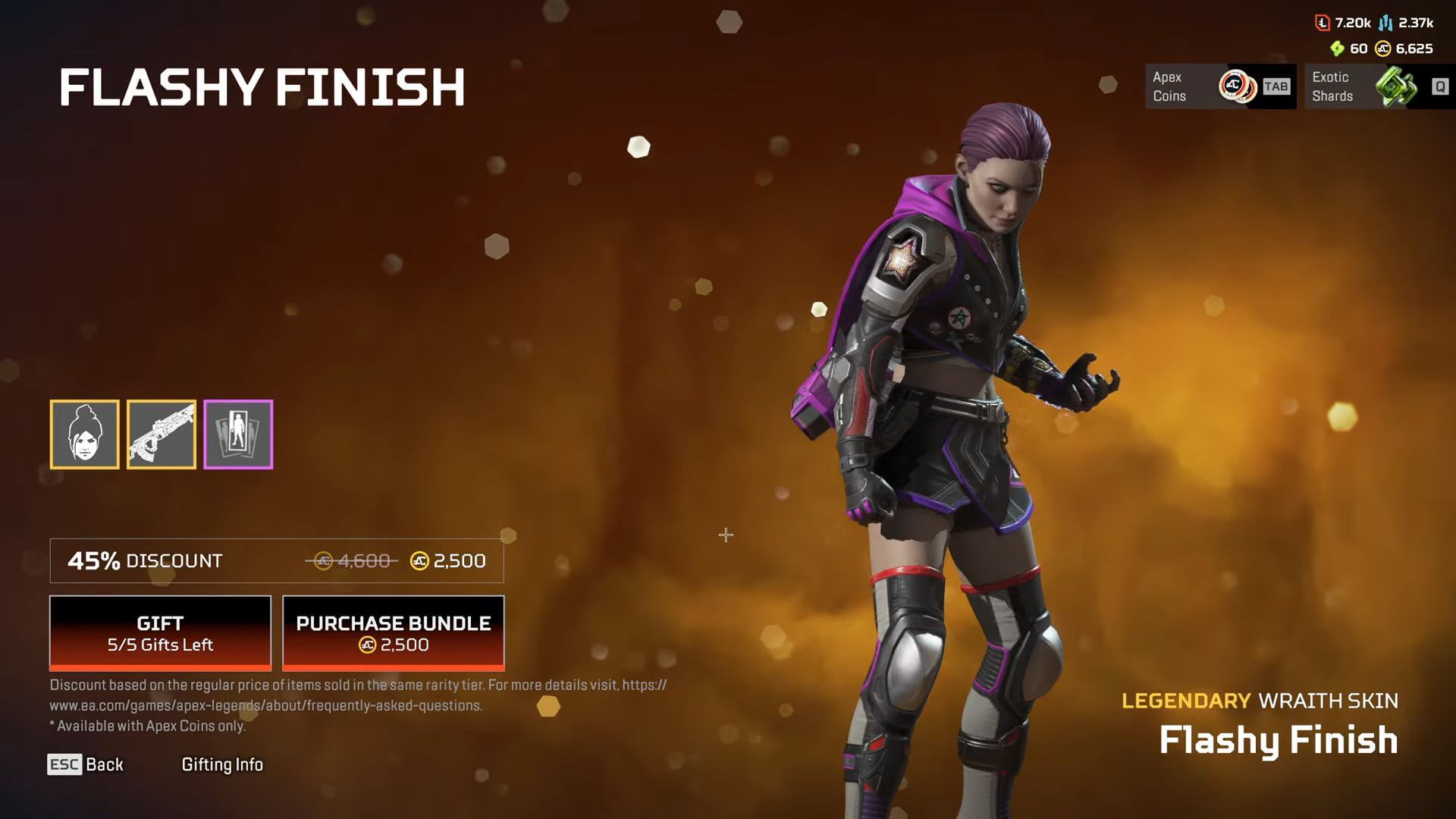 - Flashy Finish Bundle: 4,600 Apex Coins (2,500 after 45% discount)