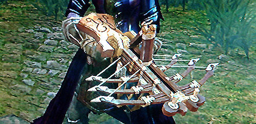 “An extremely rare rapid-firing crossbow. Fire three successive bolts. Inflict heavy damage by making all three shots count. Fiorenza, the richest merchant in all of Volgen recreated this lost weapon after reading of it in an old book”