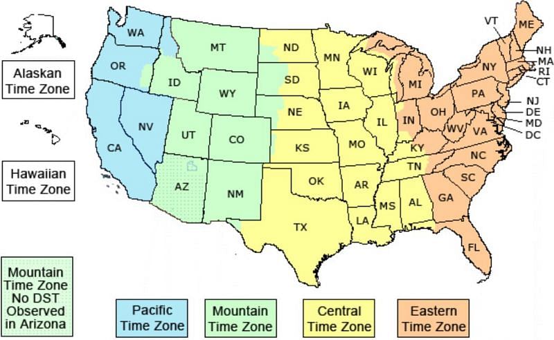 - Hawaii-Aleutian Standard Time: 12.00 to 17.00