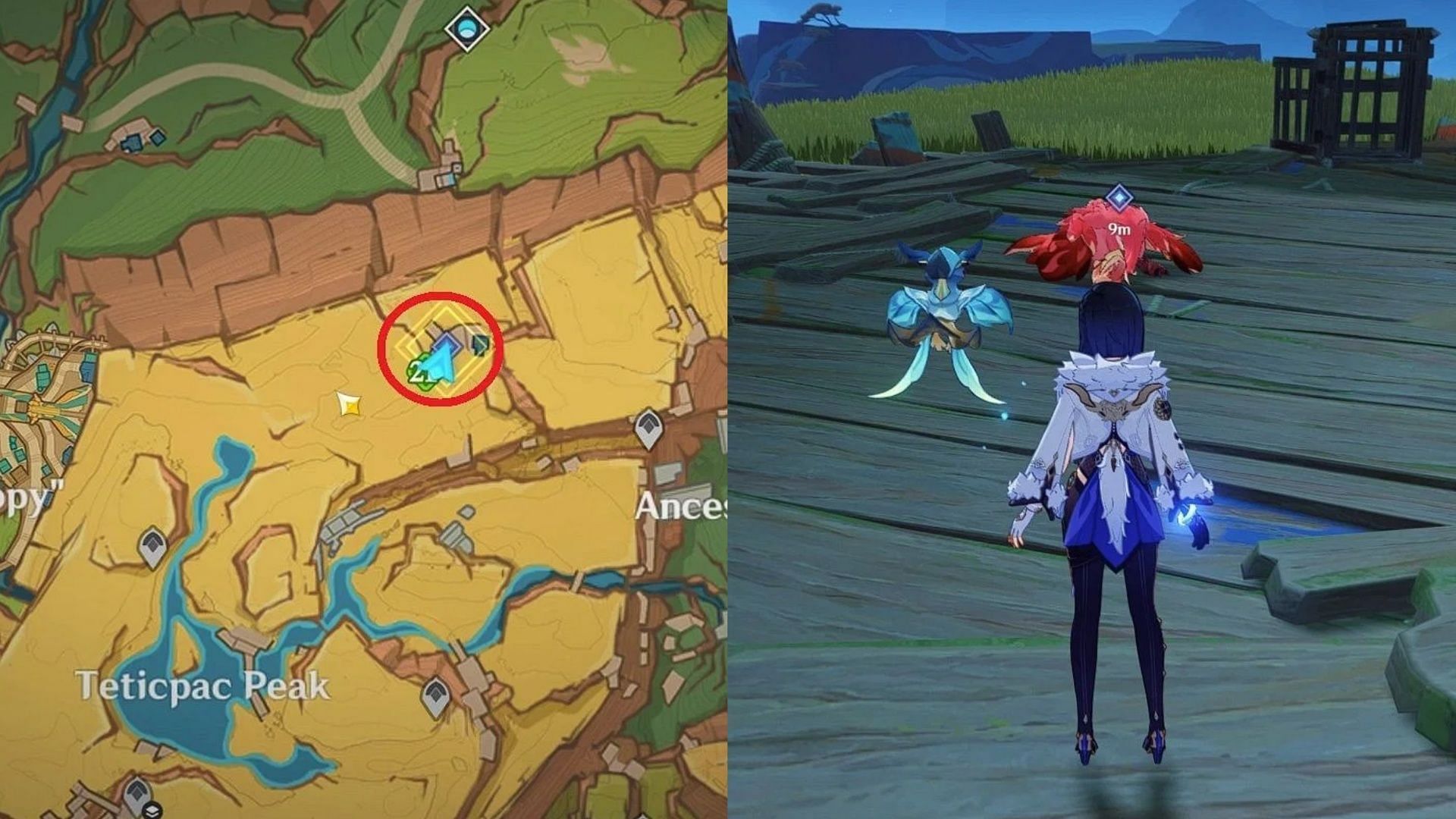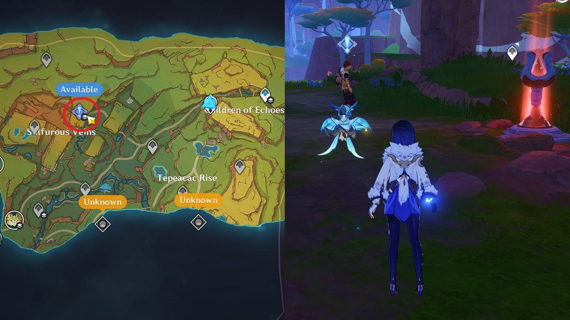 Use the teleport waypoint north of the Sulfurous Veins and go east to find a group of Tepetlisaurs. Approaching them will automatically trigger the Teptelisaurus Hide-and-Seek quest in Genshin Impact.