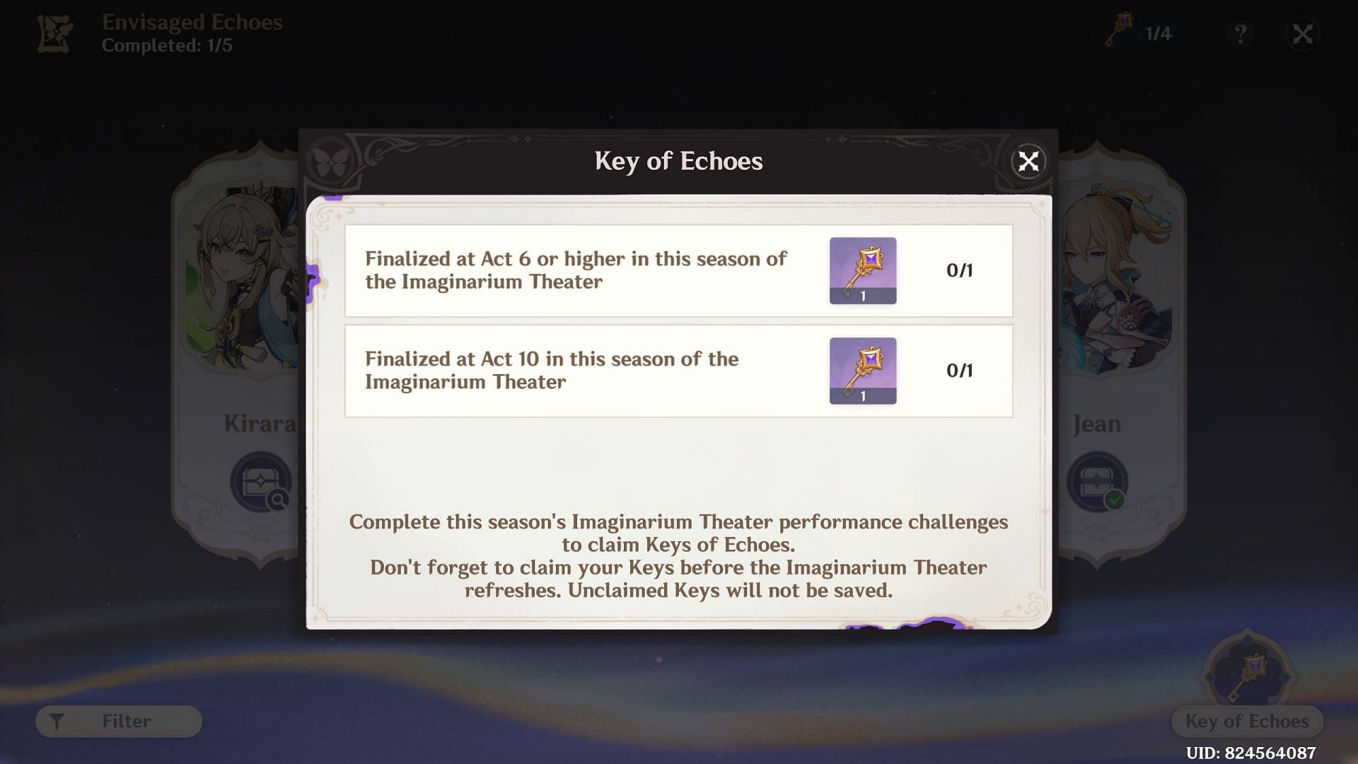 As mentioned above, to get the Envisaged Echoes for your desired character, you need to complete certain challenges in the Imaginarium Theater to obtain Keys of Echoes. You can then exchange these Keys to start a challenge for the character whose Envisaged Echo you wish to get. Completing the challenge will reward you with their Envisaged Echo.
