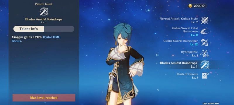 Xingqiu's passive ability, "Blades Amidst Raindrops," grants him a 20% Hydro DMG bonus without requiring any conditions to be triggered. Players who are unlucky with getting a 5-star Hydro DMG bonus goblet from the RNG domain drops can use a 4-star goblet, considering that this passive talent will compensate the bonus amount.