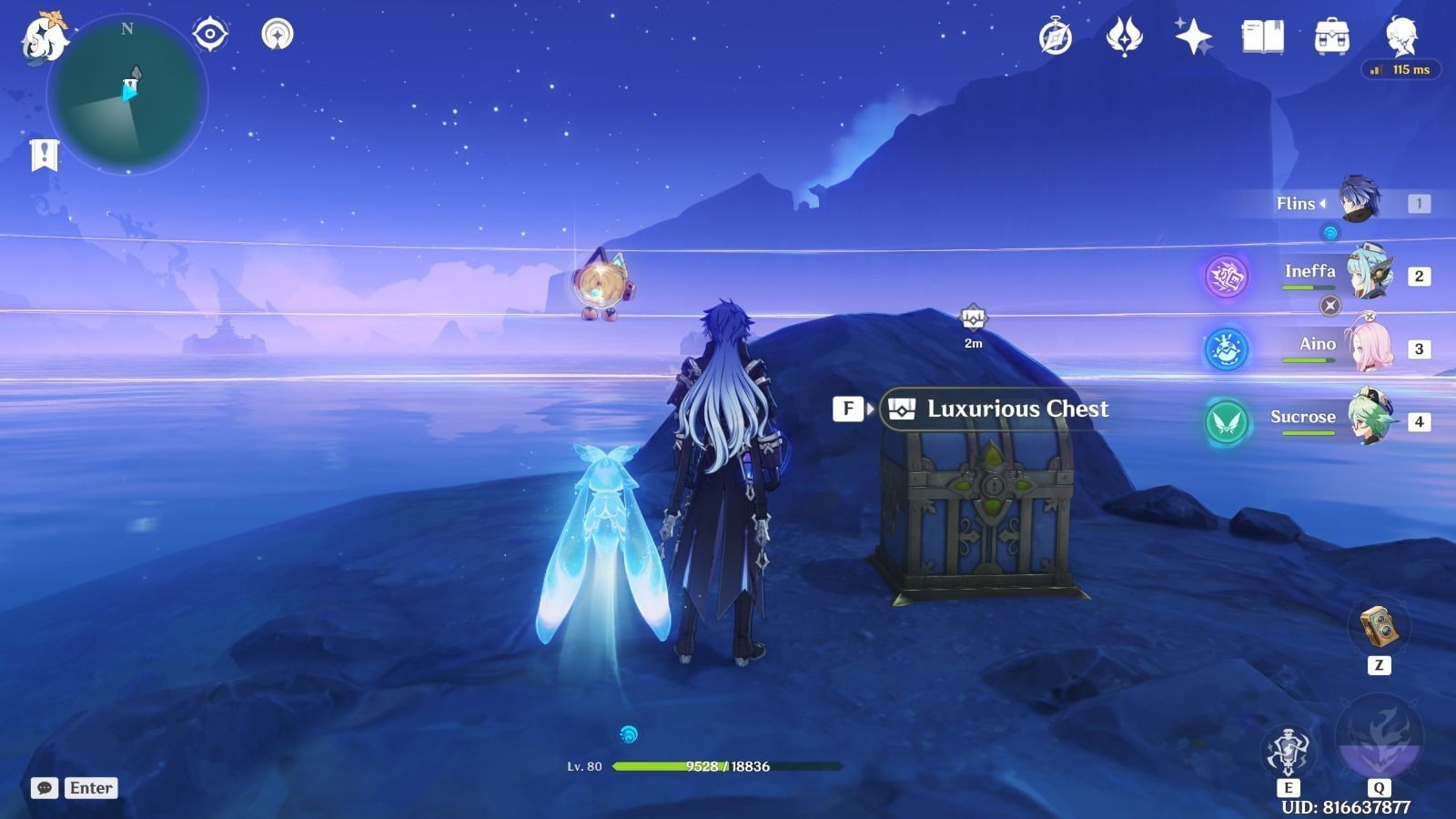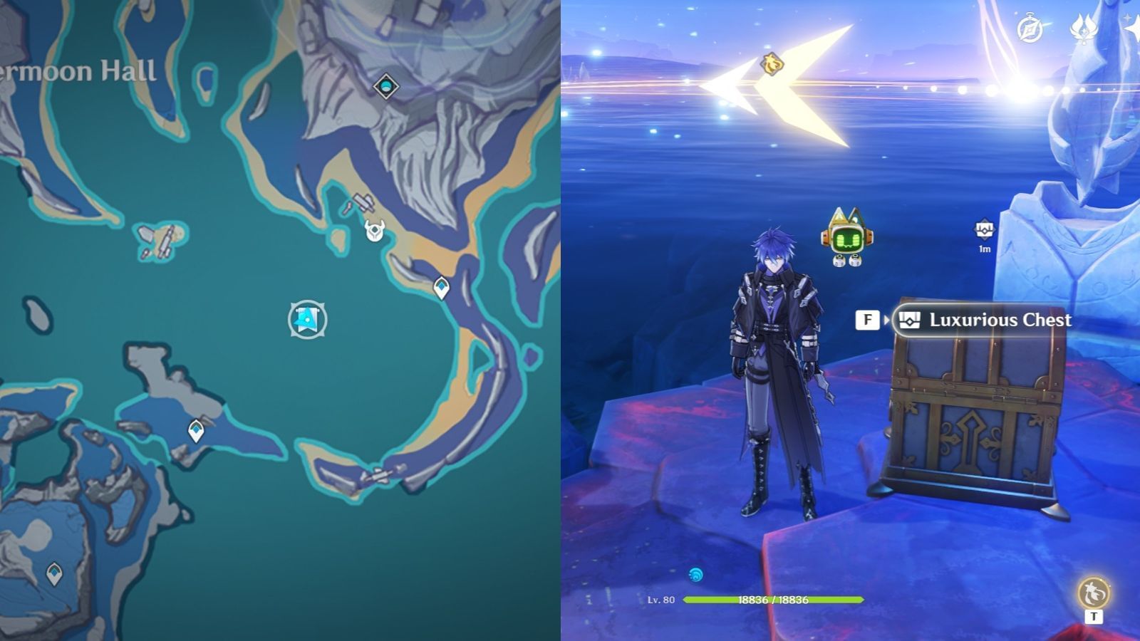 This Luxurious chest will be trapped behind a barrier when you first enter this area. To remove this barrier, you have to complete For a Green Island... World Quest in Genshin Impact. After completing this quest, you can claim the Lunoculus and Luxurious chest in the marked location.