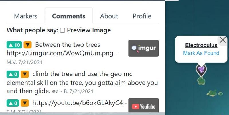 In Appsample’s tool, players can make notes on the Electroculus pins. Many in the Genshin Impact community write hints that will guide players right to the Oculi. So, if the marker alone isn’t enough to find an Electroculus, players can simply refer to others who’ve already found it. Some users will even link to images or videos for a more visual guide.