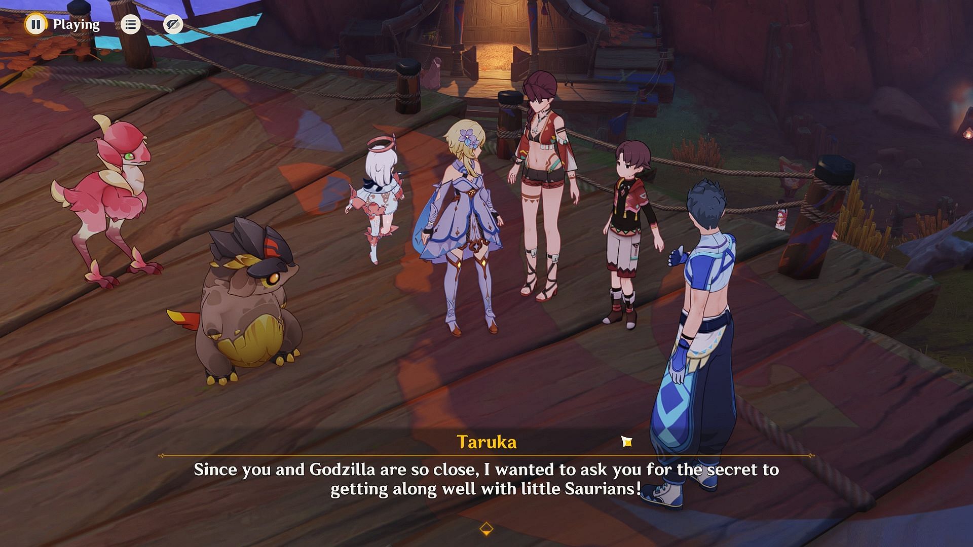 Finally, follow the quest navigation and return to the flight school to find Taruka. This will trigger a short cutscene and conclude the Farewell, Final Saurus Cracker quest in Genshin Impact.