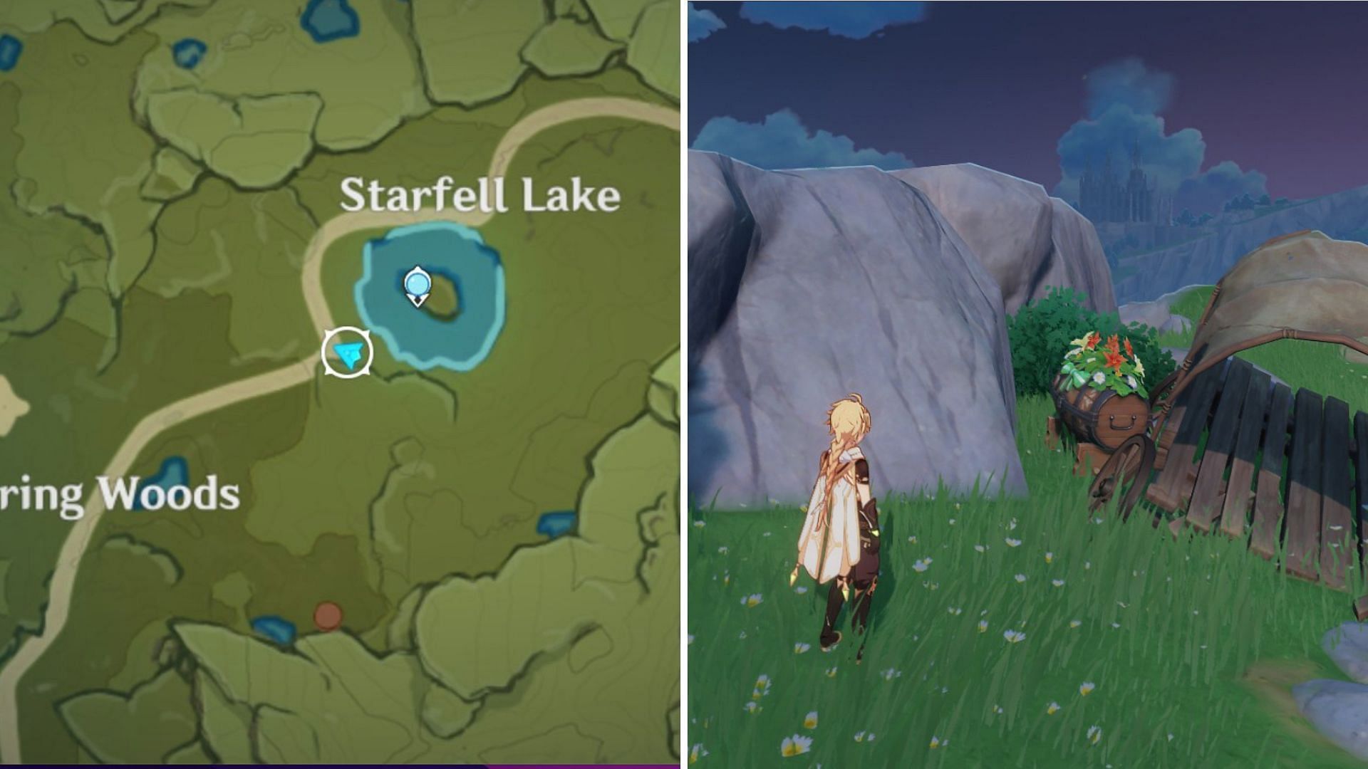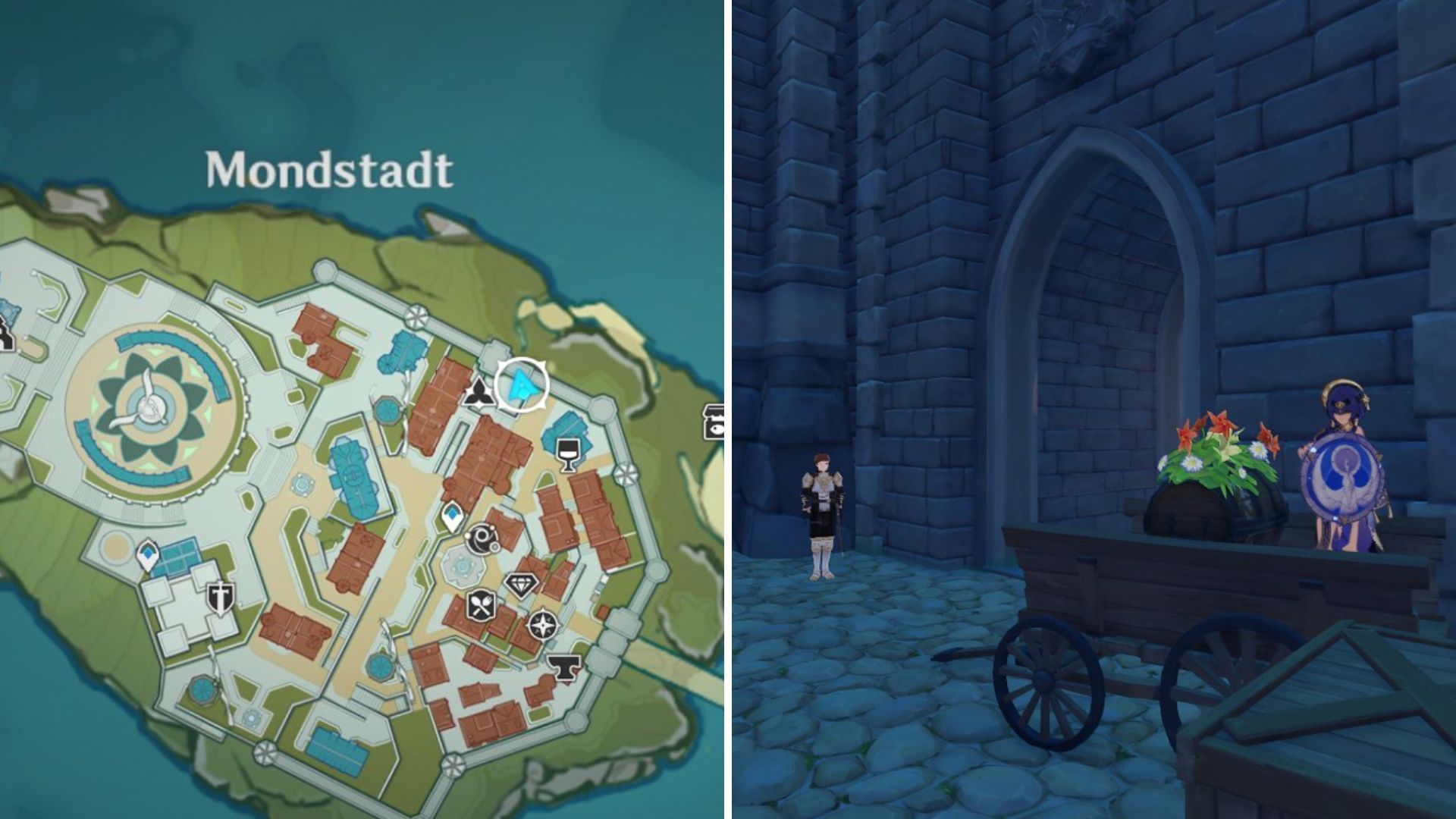 Head towards Mondstadt's reputation board to find the hamper on top of a cart near the city gates.