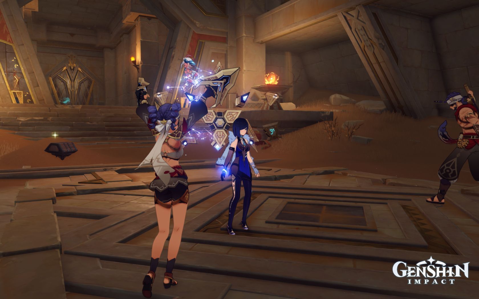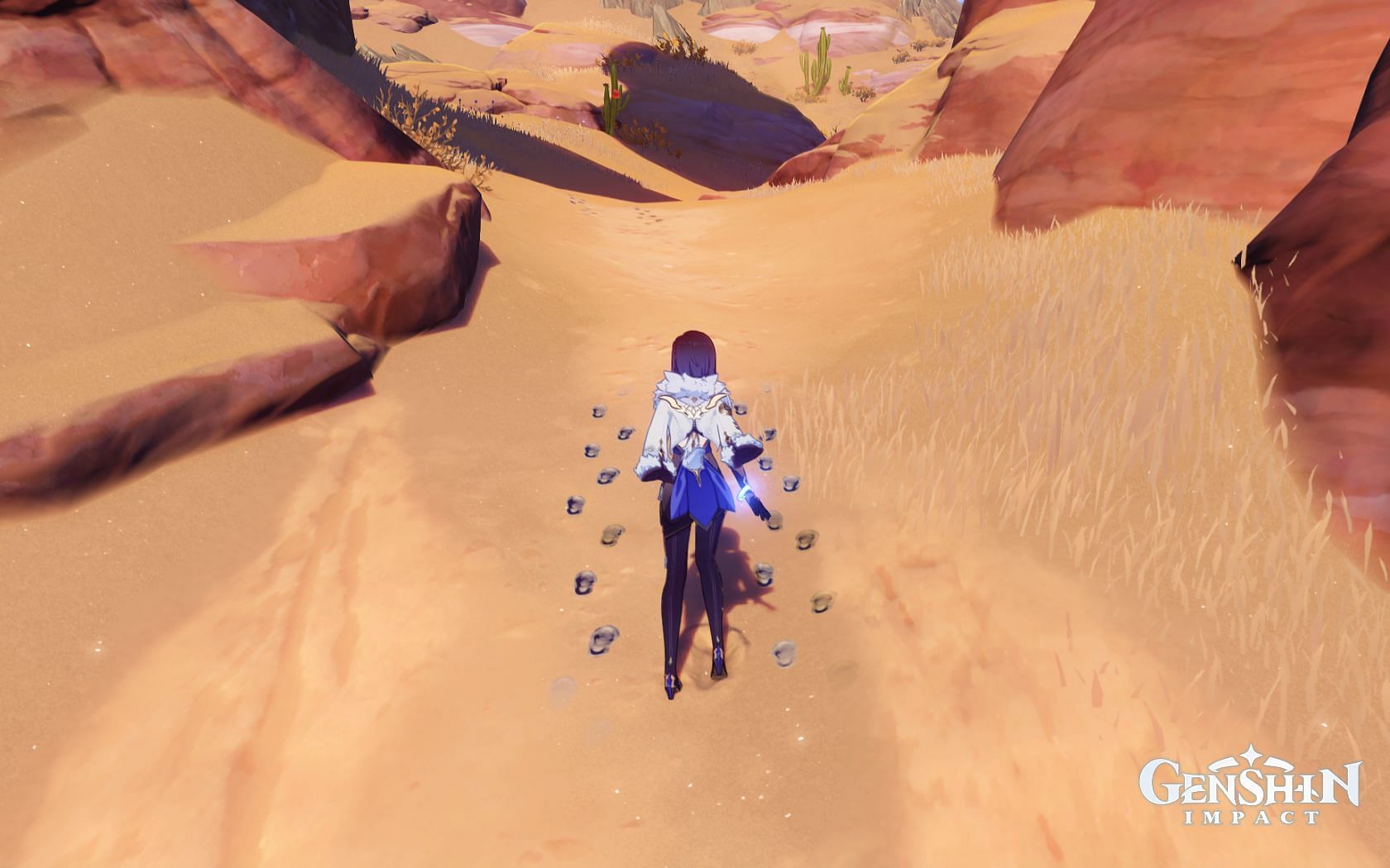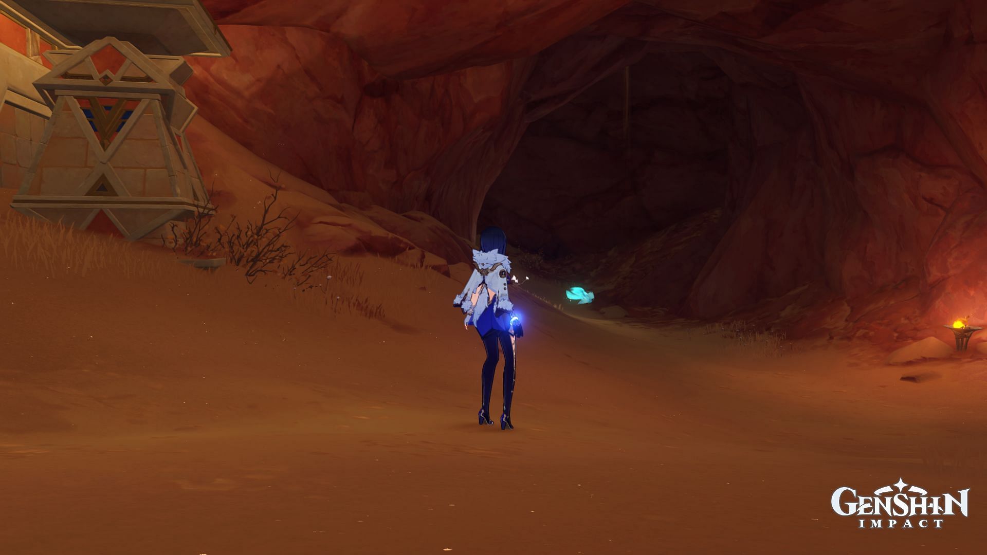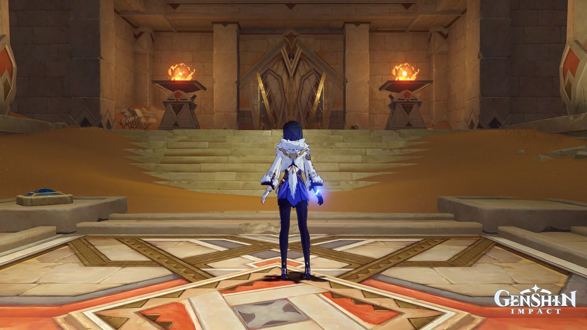 At this location, you will see a cube in some sand. Simply use any Anemo attack to disperse the sand. Once that's done, activate the cube to see the door in front of you open.