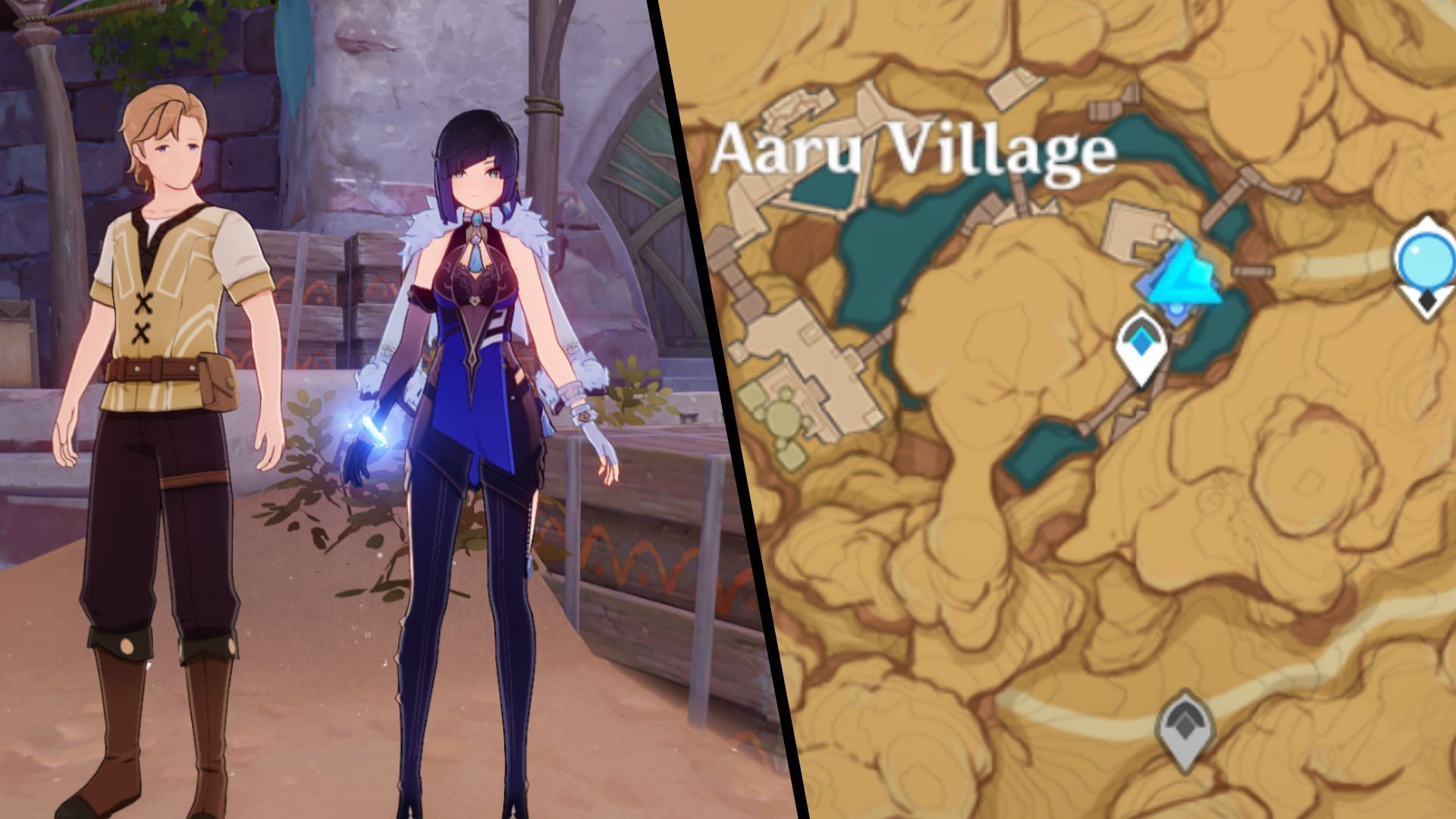 To start the Golden Slumber quest series in Genshin Impact, you must go to Aaru Village. On the east side near the Teleport Waypoint are two quests, but it's the one with Bonifaz that's relevant for this topic.